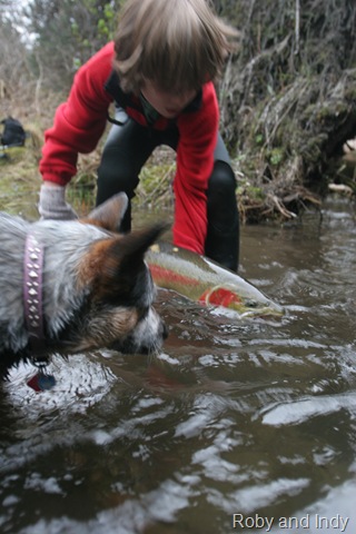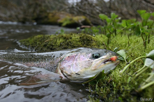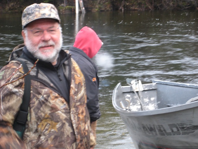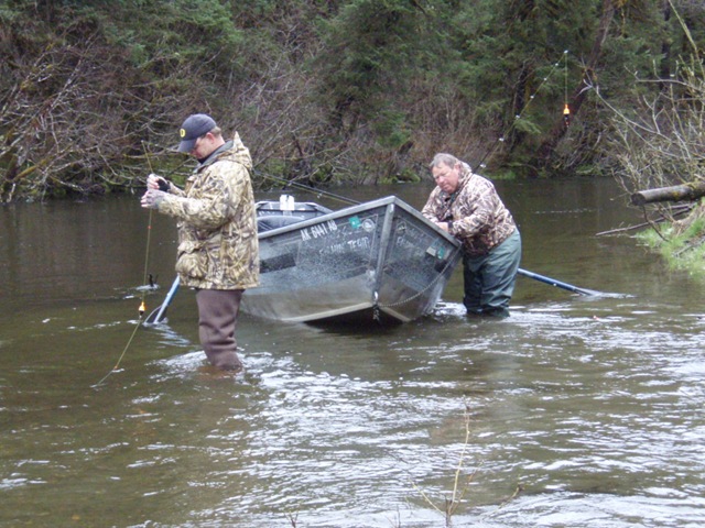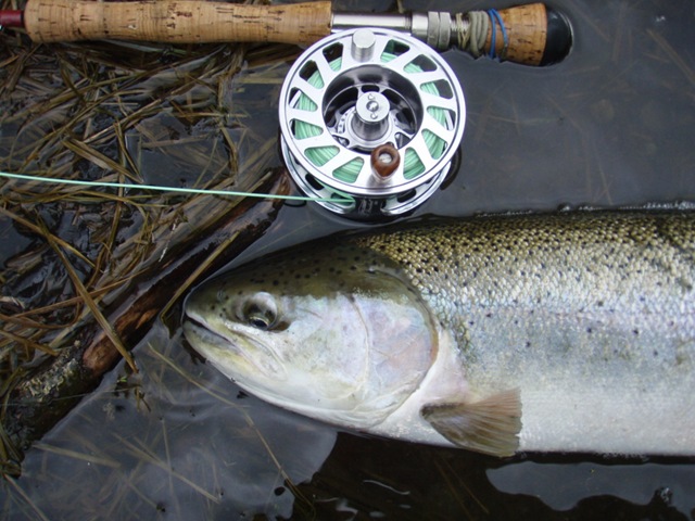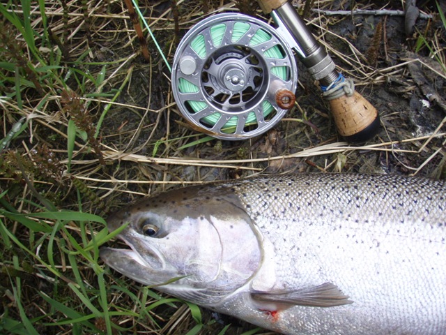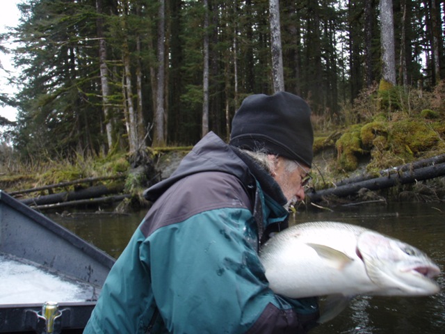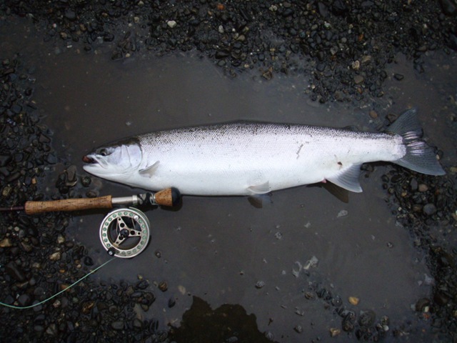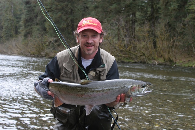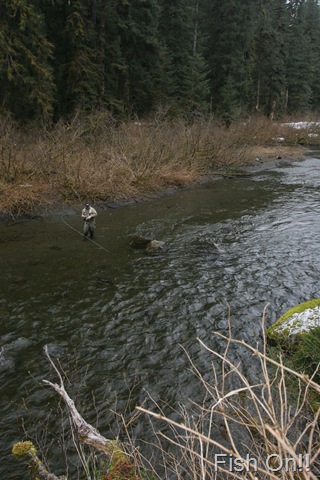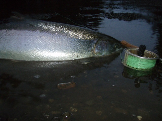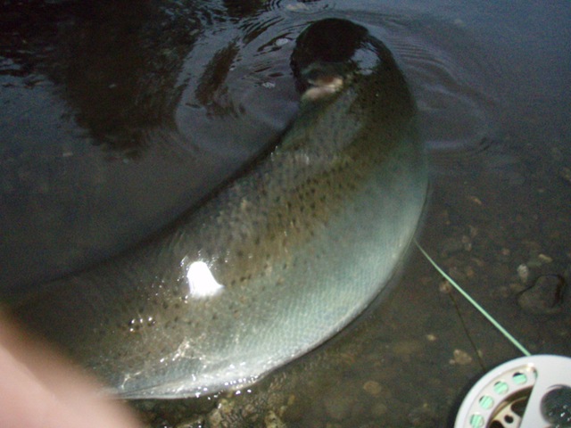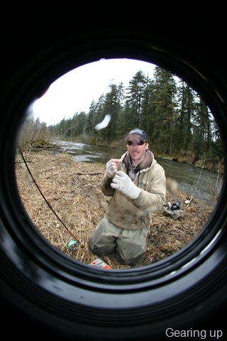 Sorry about the font, my program keeps giving script errors. Well the sockeye will be here soon, but there are a bunch of Steelhead still in the river. On the 14th of June, commercial nets go into the river. Cross your fingers that the Steelhead are gone by then. There are a small percentage of Steelhead that get caught in the nets each season, but the percent is small enough, that there is virtually no impact on the run itself. I can smell the Salmon in the air. They are close, but I still can’t get out of Steelhead mode. Steelhead are the best fresh water fish there is, and I wish they would run all year long. This will be the last Steelhead post of the season, or until I get back to Oregon for the winter. I hope the Salmon season goes well, and I will continue to post nearly every day throughout the entire year. I don’t take as many pictures during Salmon season normally, as I do with the Steelhead, so if I am slacking on pics then let me know. I will also be tracking down the Yakutat Lodge Hooker fleet of boats, to get pics of the butts, cod, and kings. Hopefully during this time I can give some good info and how to catch Steelhead, and some of the methods I have used for the last 20 years. Here are some pics from the last of the Steelhead with my photographer.