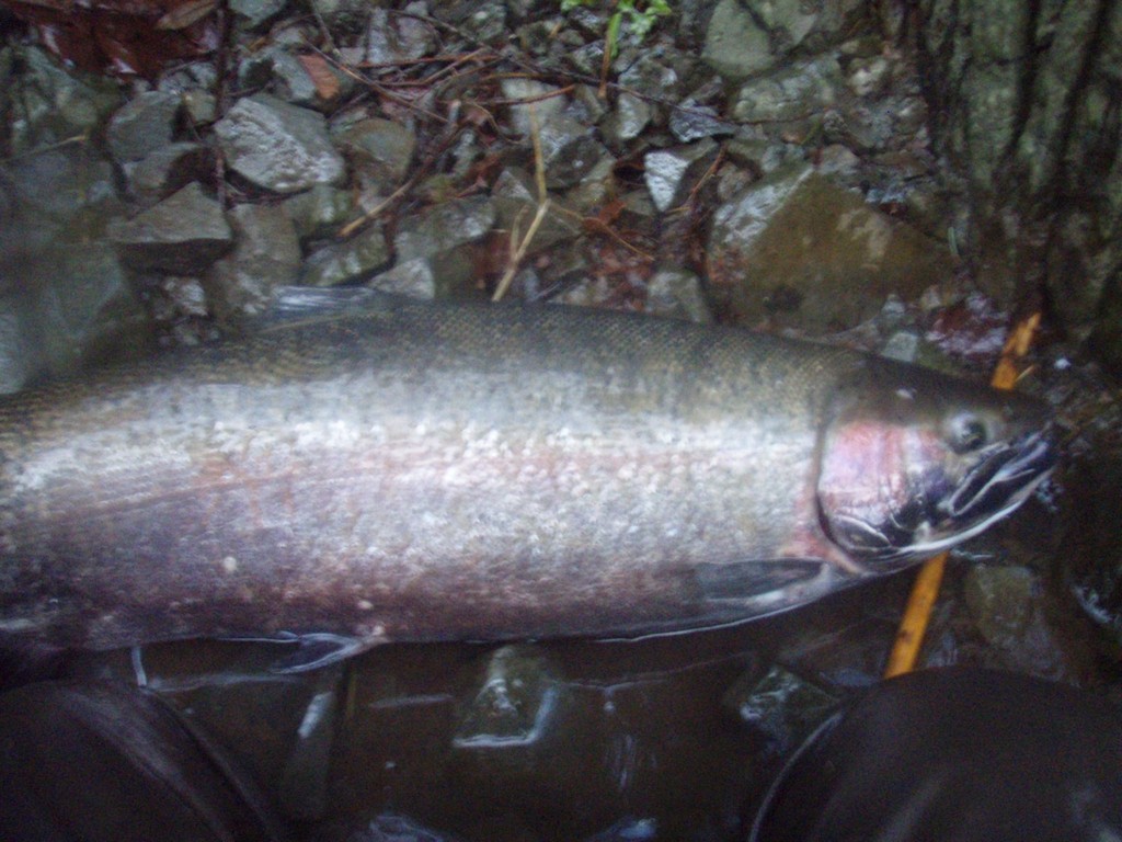 As we worked our way down the creek today, we did notice the amount of fish has diminished to a certain point. I still hear of reports from the Clackamas, that eagle winters are still being caught. As of 2 days ago, the hatchery had processed 375 fish, and had approximately 200 in the trap and corresponding pool below the entrance. In this case, there should be somewhere in the vicinity of 3 to 4 hundred more fish to arrive in the next month. It does happen this time of year as, the water drops and clears, the fish slow down there movements and stop biting so willingly. A fish that may have taken 5 casts to catch last week, may take 50 now, and the bite still may never come. So if you are out there attempting to catch these grey ghosts, then patience will be the best thing to have on the end of your pole. Here are the pics and vids form today. Also I reposted 2 stories I had written in the past. I just thought maybe some of the newer viewers would enjoy these. Please leave me a comment and let me know what you think!