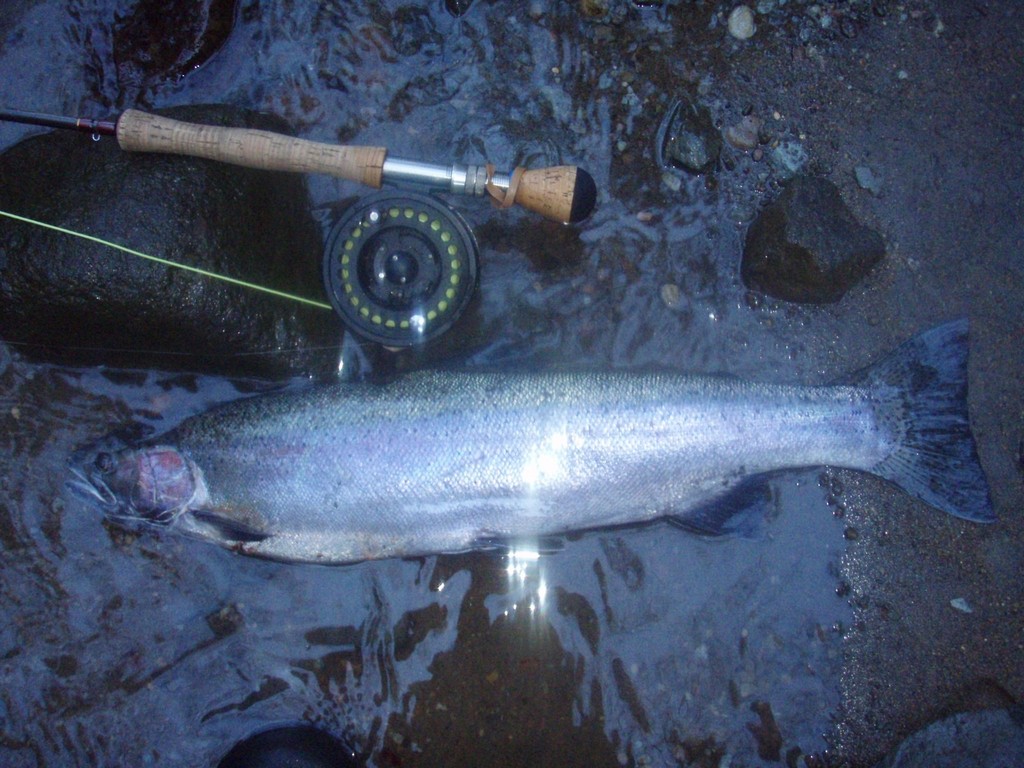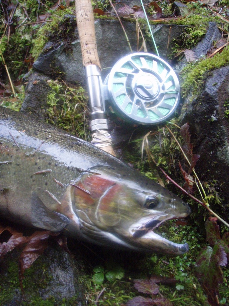 Any Steelhead fisherman that has put in the time and the energy into catching these magnificent creatures, knows the perils of losing all your line to big feisty fish. There is a chill in the air as you walk through the darkness to your favorite fishing hole. You step up onto the rock and look into the spot you know should be holding a fish. As you watch the water go by, and begin to see through it like a rough diamond, you get glimpses of the purity, but the riffles on top keep your sight from being perfectly clear. Then you pick up the faint Grey line through the riffles, that can only be a Silver Bullet Steelie. It appears as though there are two Steelies laying in your slot. You get a little shaky with anticipation, you start to get ready to cast, and you have to stop and compose yourself before you screw up and spook the fish. Moments later you are ready to start casting with confidence that your nerves are in tact. The strike comes without warning, and with a thunderous bolt from the liquid cage that held the Silver Bullet in it’s chamber, a monster of the creek shows itself in all it’s glory. Straight into the air, head shaking, glimmering in the sun, and staring you down as he re-submerges his chrome sides back into his liquid home. Seeing this massive fish in the air has you shaking again, but you are a master of your domain, and you rear back on the Goliath and get ready to settle in for the fight of the day. Running down stream with the speed of a race car, the fish never even looks back to say goodbye. You lift your feet up to prepare to run after your catch, when you suddenly remember the other fish that was laying in the slot next to the one on your line. You take a quick glance back into the slot,(Thinking you can come back later and get him also), and realize that the two fish you thought you saw, was actually the one fish you are fighting. Ripping line off the reel at an incredible rate, and with no sign of slowing down, you take off after him. Like a Gazelle, you jump from rock to rock, and from tree stump to tree roots. You do everything in your power to keep the line tight , keep your balance, and to catch up to the massive fish that is taking you to school at a fast rate. Finally your arms and legs start to give out, and you are sure any strength you have left is not enough to win this battle. Just then, you realize you haven’t seen your fly line in quite awhile, and your backing is giving way to the bottom of the spool. You give it one last burst of energy in hopes of getting your fly line back into the reel, but the fish has to much space on you, and with the current in his favor, the fight has to be put to a stop. Laying back into the fish you wait for the fly to break off, but instead you nail knot breaks off and you watch your $50.00 fly line float away, and down through the riffles. Standing there you look down at your reel, that now consists of just a little frayed backing and the hopes of a lost fish. You ask your self what could you have done different, how could you have got that fish?