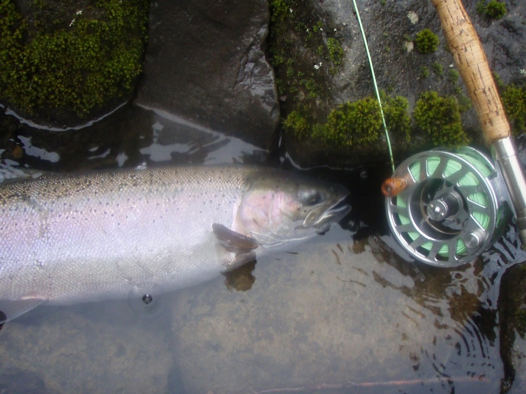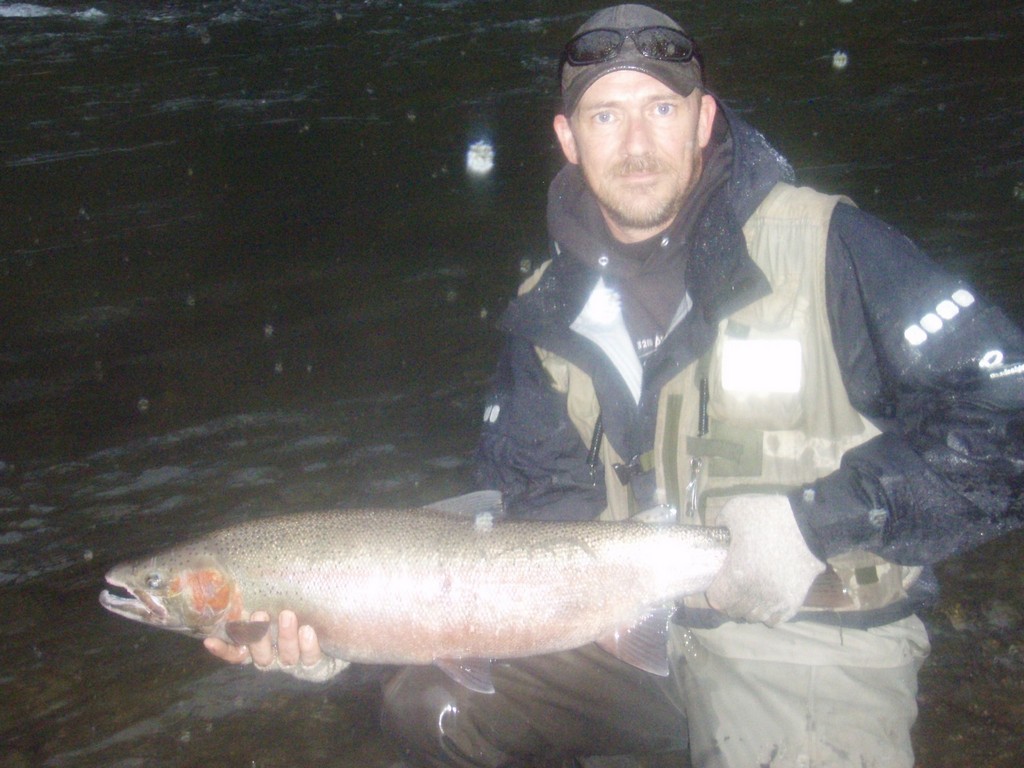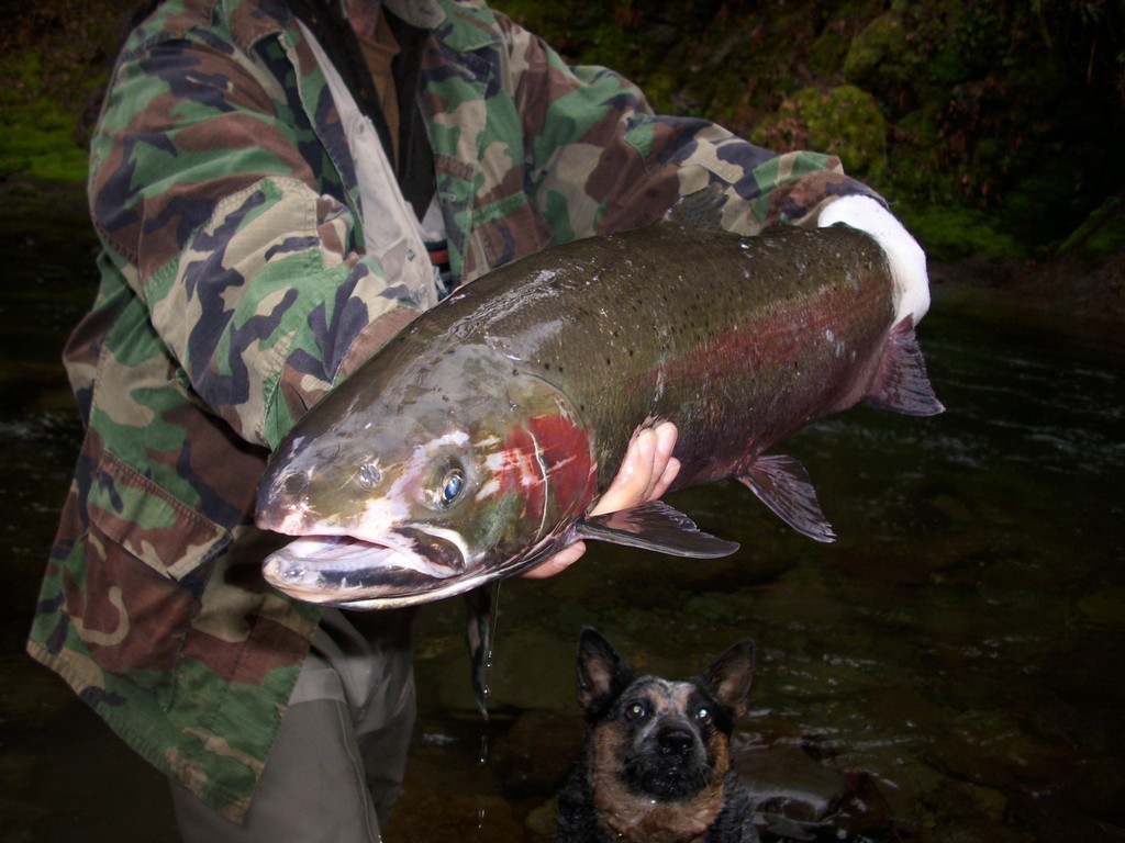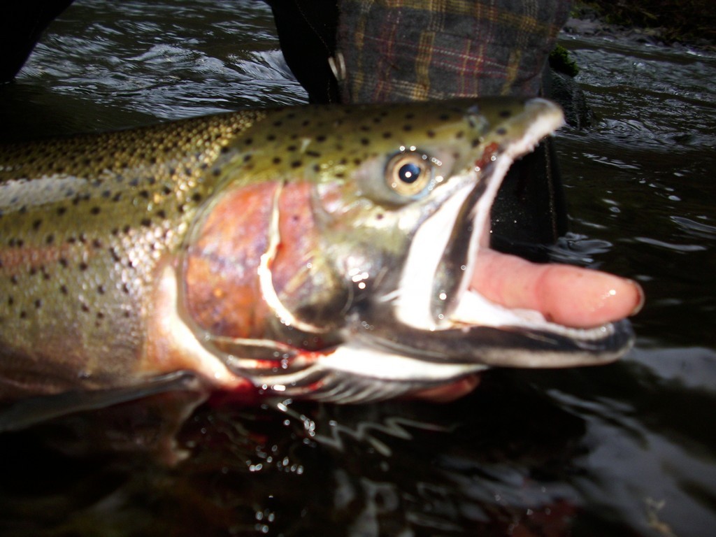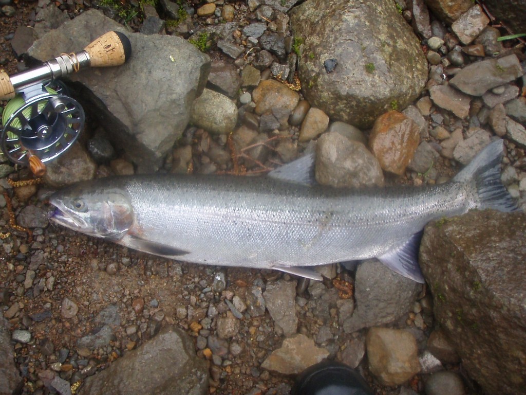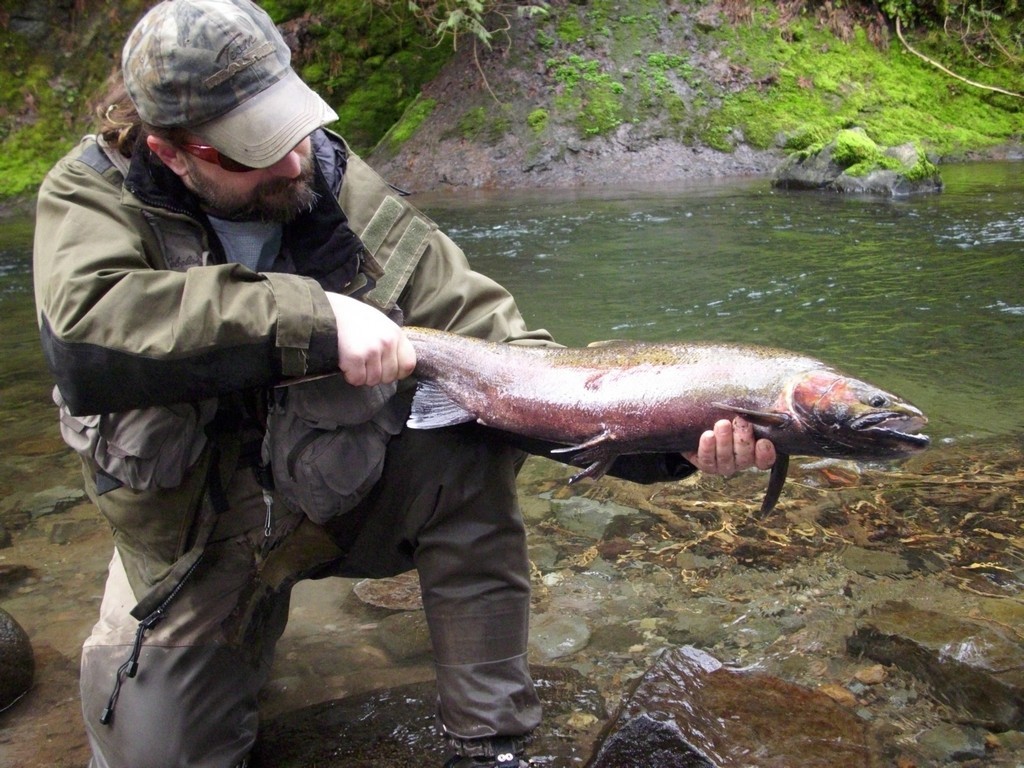 I don’t know when it will end, but I hope it just keeps on going. I know at this point, the fish are turning color, and the meat is not at it’s best, but for someone who does not eat them, they are still fighting fish. For the last 30 years, I have taken some flak for fishing after all the bright ones are gone, but I say to them “Who cares, they still bite, and they still fight!†I have seen and landed several very nice fish this last week, (some egg wagons with the skeen’s still in act and great meat for those that want it). The males may have color on them, but if they are still firm and not to badly beat up, the meat will still be in great shape, they just don’t look as good to the neighbors when you bring it out for the barbecue. Anyway, the fish are still moving in. Today, Matt and I saw nearly 20 fish, got into 12, and landed 4. At certain times today we had up to 8 fish in 2 different holes, with new fish moving in throughout the day. Weather has been fabulous, but it is leading to real low water conditions, causing the fish to be more spooking after the morning shade goes away. Most of the fish are laying in tight little riffles behind rocks, but we did find fish moving through the bigger holes today. At least 5 of the fish we saw today, were 12 to 15 pound chrome bright egg wagons, working there way up quickly. We could not even keep up enough to get one cast at these fish. “They were on the move!â€. Here are the pics from today, and I am trying to put together a good vid, but youtube is messing up with the music I can use. Hope to have it up soon!.