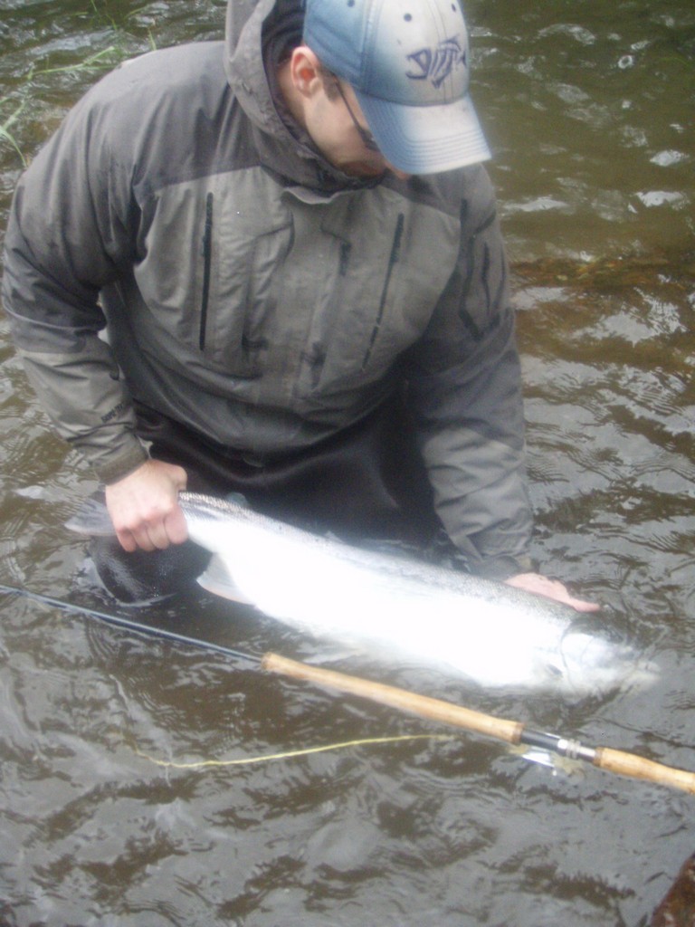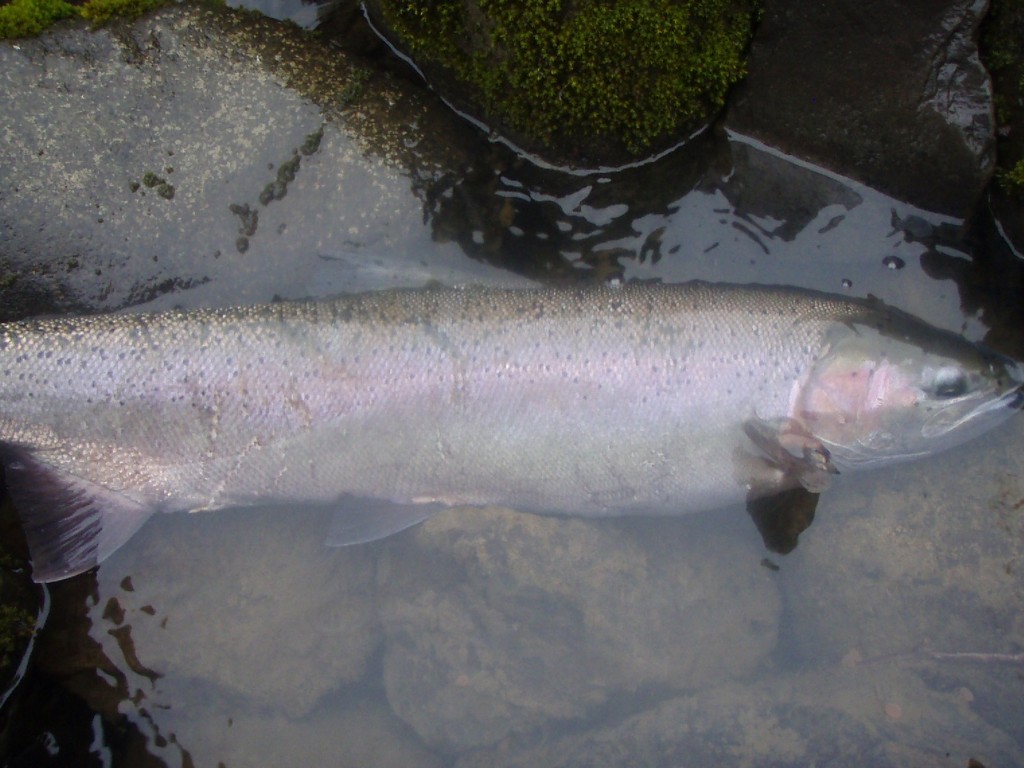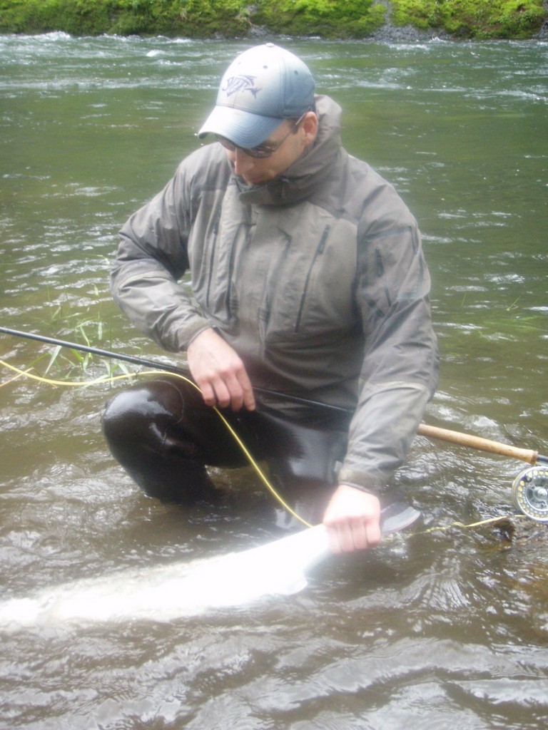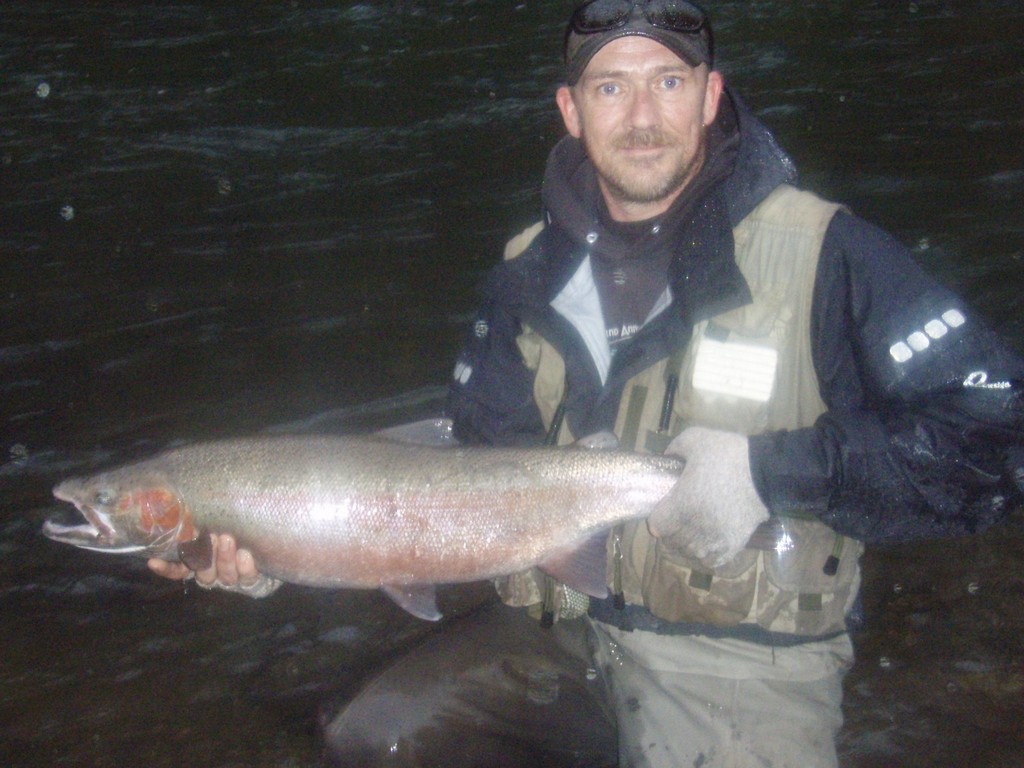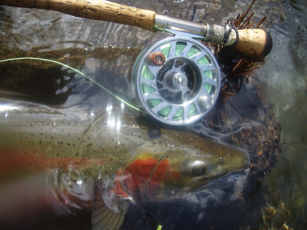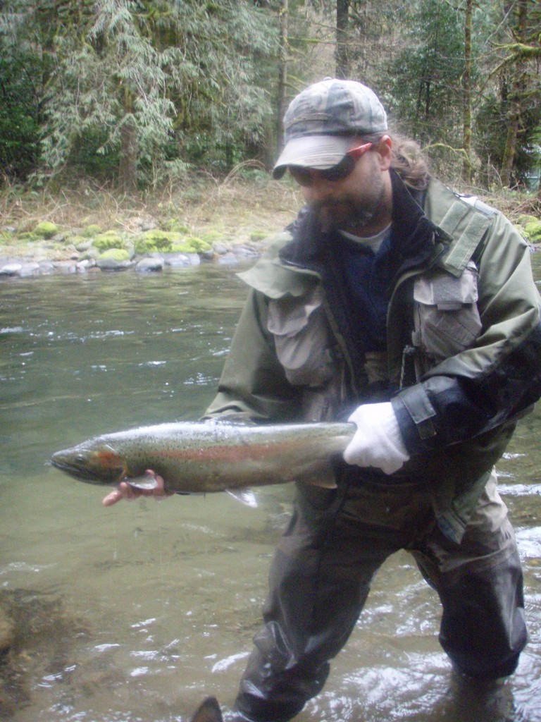 I don’t know when it will end, but I hope it just keeps on going. I know at this point, the fish are turning color, and the meat is not at it’s best, but for someone who does not eat them, they are still fighting fish. For the last 30 years, I have taken some flak for fishing after all the bright ones are gone, but I say to them “Who cares, they still bite, and they still fight!†I have seen and landed several very nice fish this last week, (some egg wagons with the skeen’s still in act and great meat for those that want it). The males may have color on them, but if they are still firm and not to badly beat up, the meat will still be in great shape, they just don’t look as good to the neighbors when you bring it out for the barbecue. Anyway, the fish are still moving in. Today, Matt and I saw nearly 20 fish, got into 12, and landed 4. At certain times today we had up to 8 fish in 2 different holes, with new fish moving in throughout the day. Weather has been fabulous, but it is leading to real low water conditions, causing the fish to be more spooking after the morning shade goes away. Most of the fish are laying in tight little riffles behind rocks, but we did find fish moving through the bigger holes today. At least 5 of the fish we saw today, were 12 to 15 pound chrome bright egg wagons, working there way up quickly. We could not even keep up enough to get one cast at these fish. “They were on the move!â€. Here are the pics from today, and I am trying to put together a good vid, but youtube is messing up with the music I can use. Hope to have it up soon!.