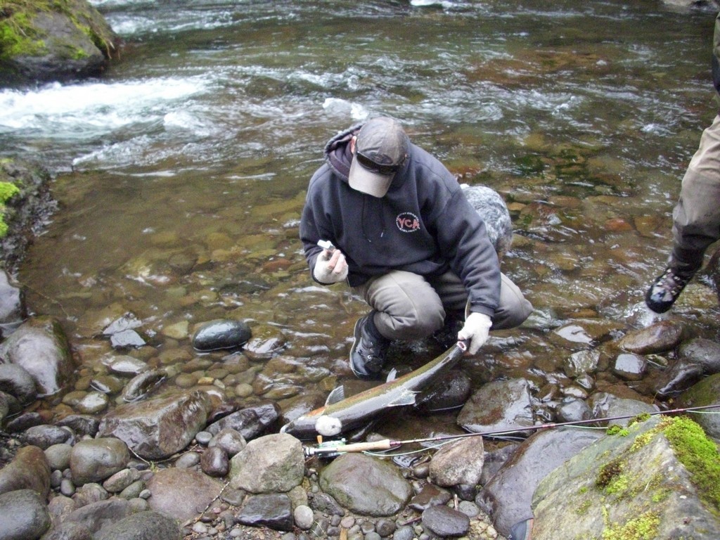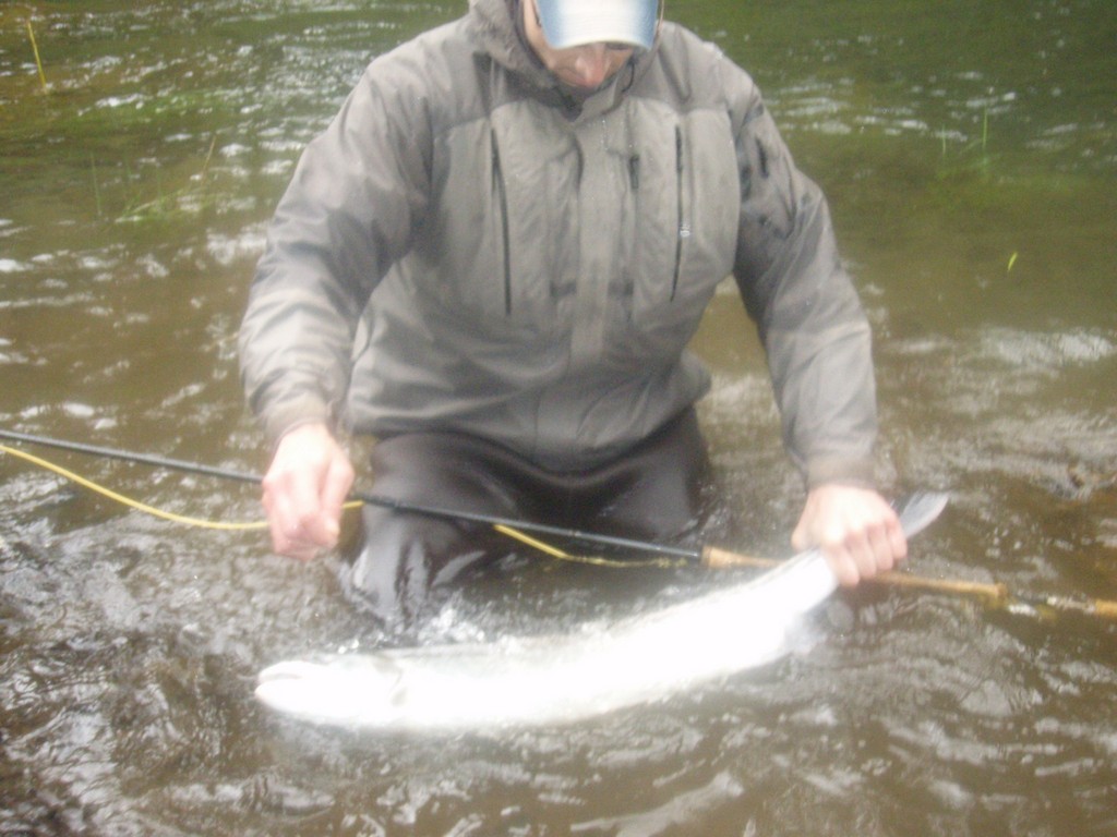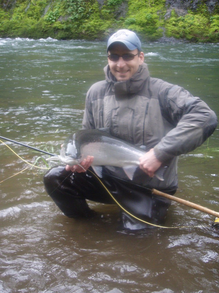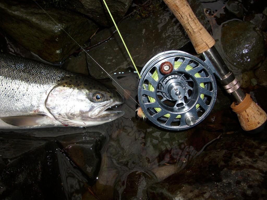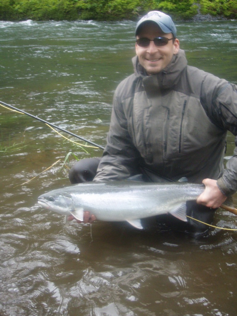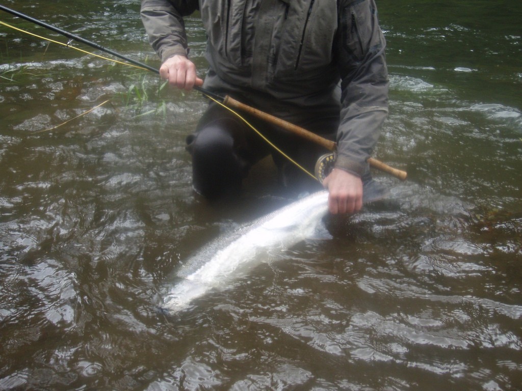 I don’t know when it will end, but I hope it just keeps on going. I know at this point, the fish are turning color, and the meat is not at it’s best, but for someone who does not eat them, they are still fighting fish. For the last 30 years, I have taken some flak for fishing after all the bright ones are gone, but I say to them “Who cares, they still bite, and they still fight!†I have seen and landed several very nice fish this last week, (some egg wagons with the skeen’s still in act and great meat for those that want it). The males may have color on them, but if they are still firm and not to badly beat up, the meat will still be in great shape, they just don’t look as good to the neighbors when you bring it out for the barbecue. Anyway, the fish are still moving in. Today, Matt and I saw nearly 20 fish, got into 12, and landed 4. At certain times today we had up to 8 fish in 2 different holes, with new fish moving in throughout the day. Weather has been fabulous, but it is leading to real low water conditions, causing the fish to be more spooking after the morning shade goes away. Most of the fish are laying in tight little riffles behind rocks, but we did find fish moving through the bigger holes today. At least 5 of the fish we saw today, were 12 to 15 pound chrome bright egg wagons, working there way up quickly. We could not even keep up enough to get one cast at these fish. “They were on the move!â€. Here are the pics from today, and I am trying to put together a good vid, but youtube is messing up with the music I can use. Hope to have it up soon!.