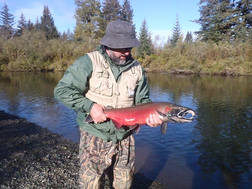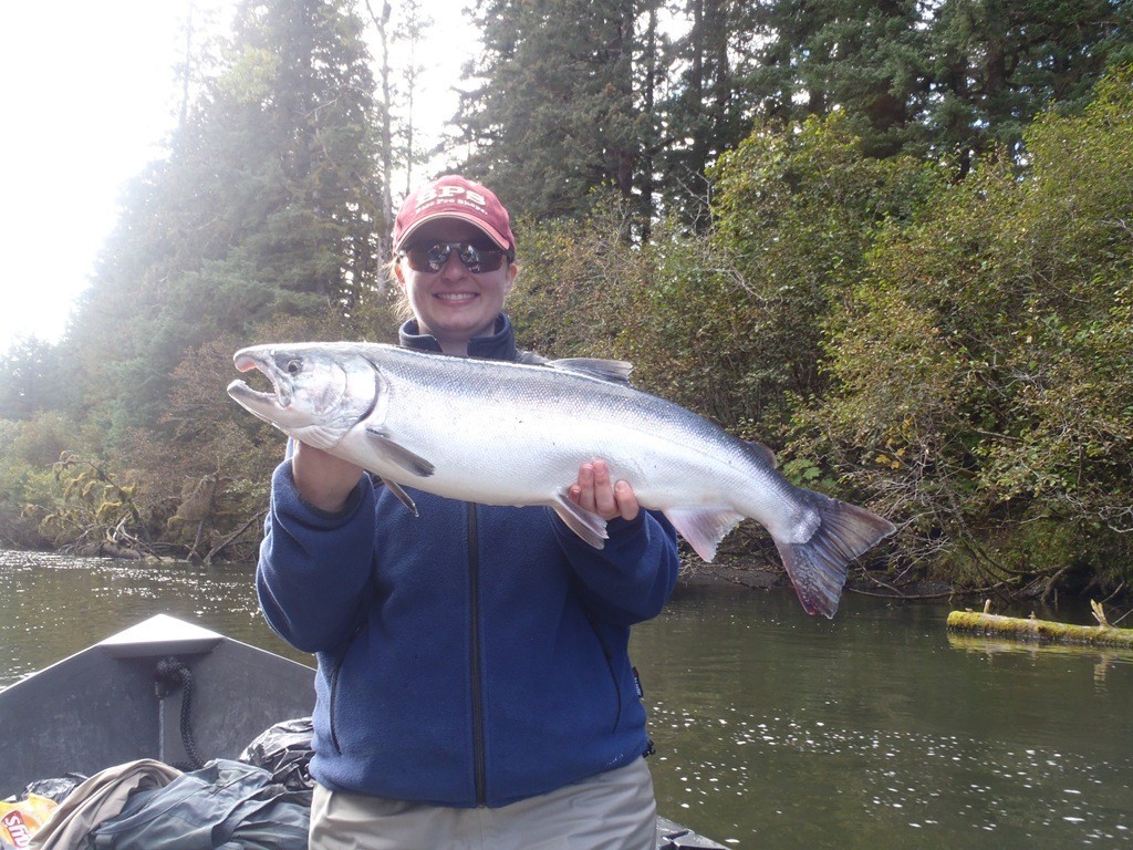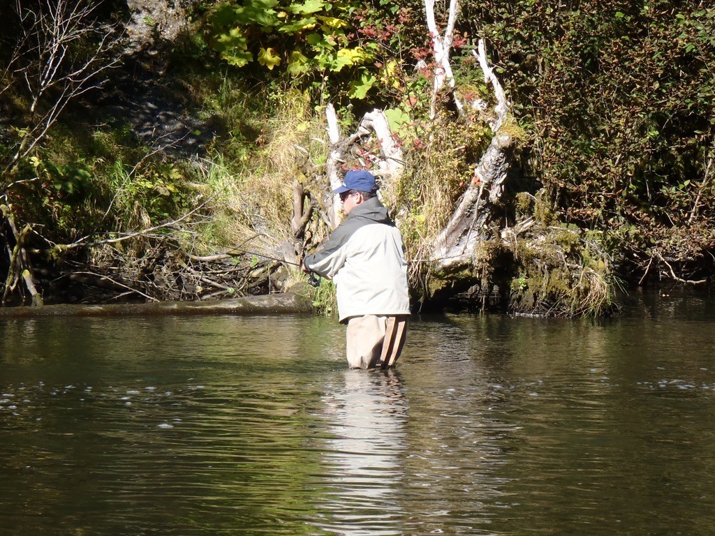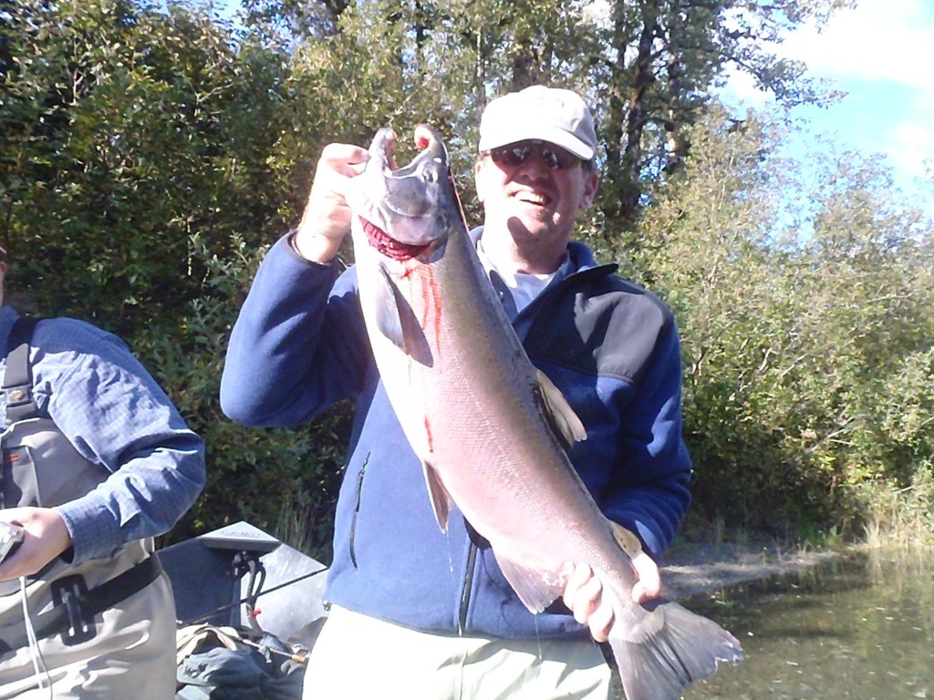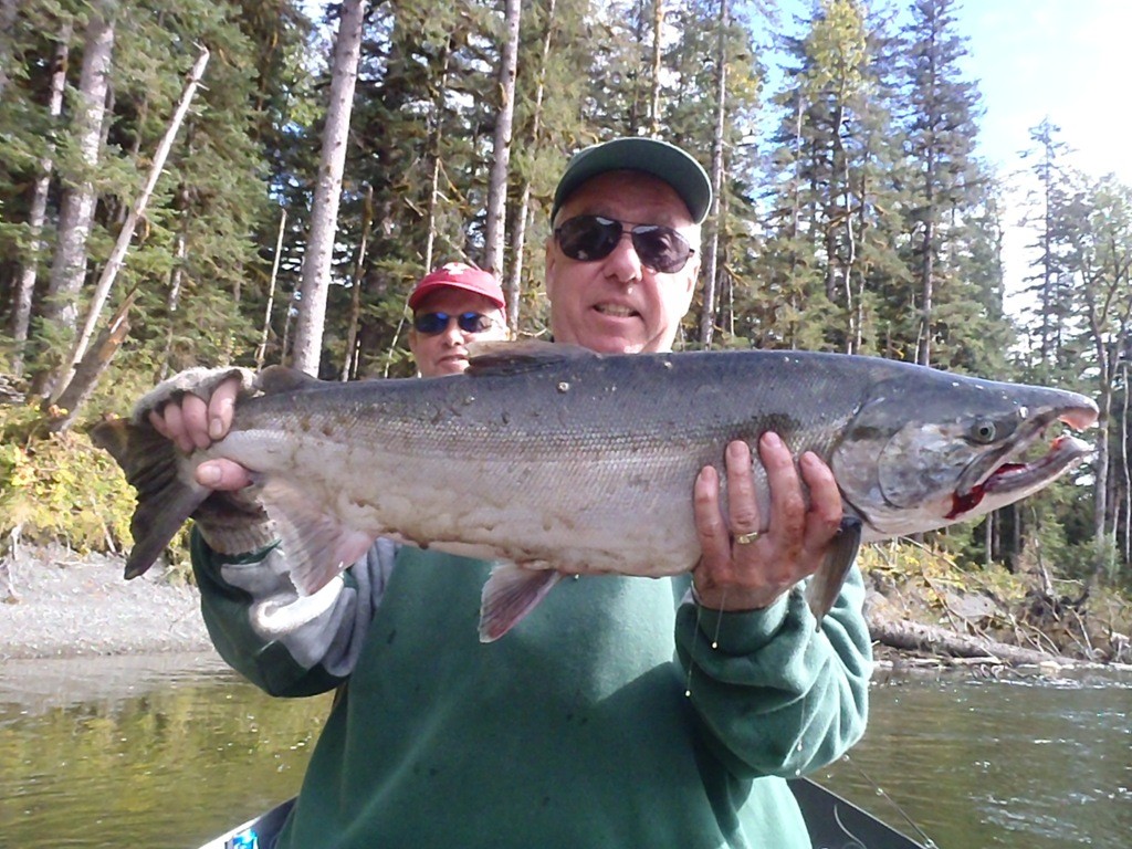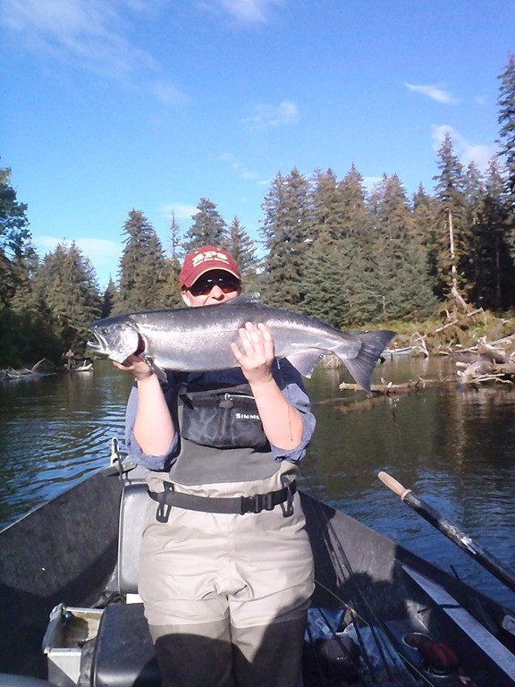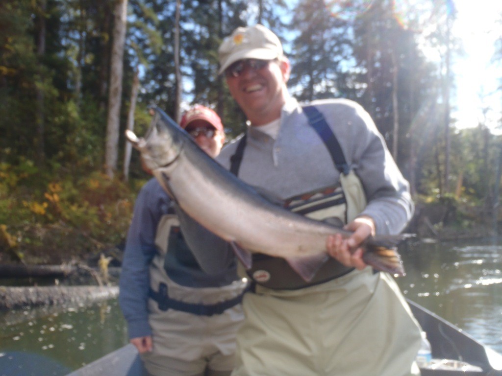 Well we have not seen any rain this month, and the water is very low on the Situk and all other rivers in the area. The fishing has been good in the early morning and late afternoon, but during the sunny afternoons, it has been a bit tough. I have had a lot of trips down the river, and have many good photo’s to share. As you all know, my internet connection this season has been tough to deal with, so the posts have been far and few between. I apologize for this, and will try to rectify for next season. I will be home in Oregon on the 3rd of October, and then the posts will pick up again. I almost cut off my finger 3 days ago, and ten stitches later, I am put back together, but it hurts pretty bad still, stitches come out in 7 days. Here are some great pics and good underwater film of the Silvers from the Situk.