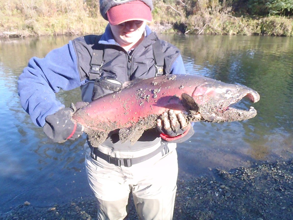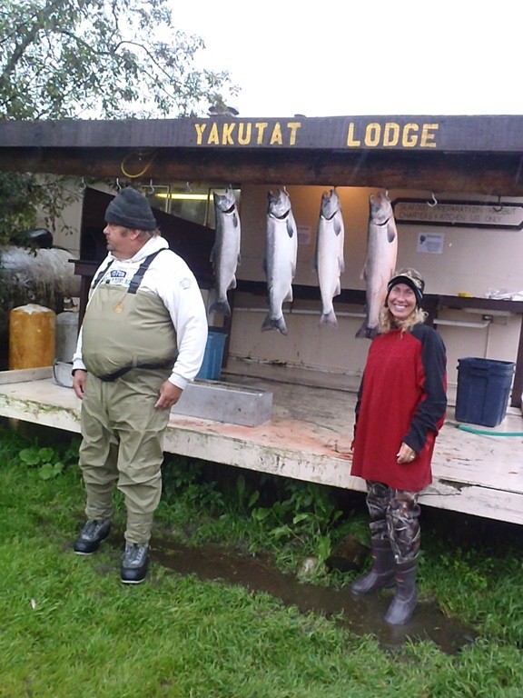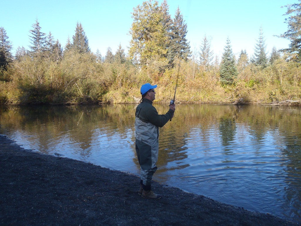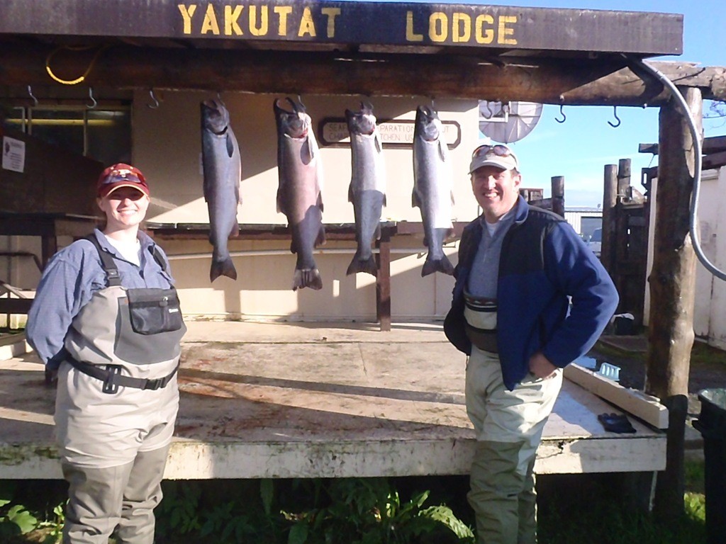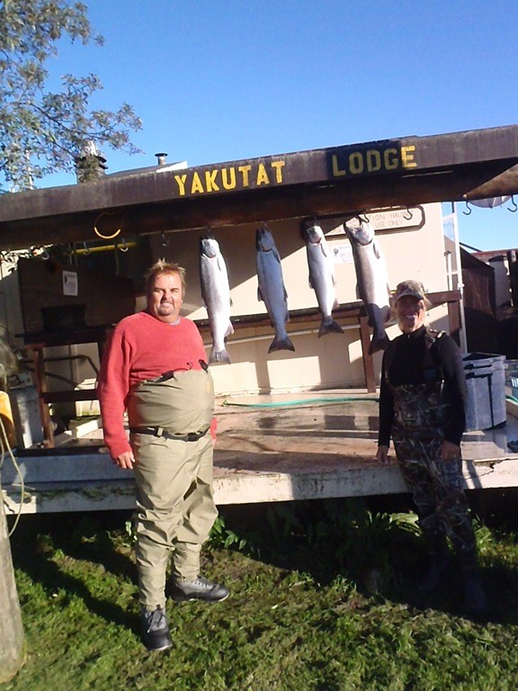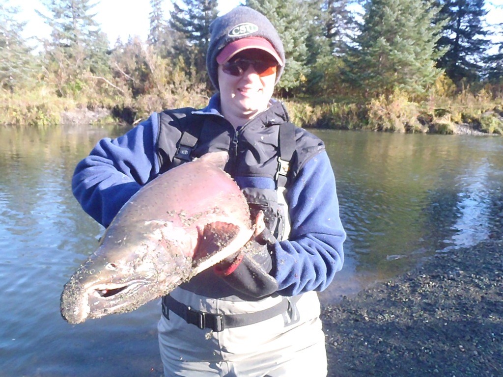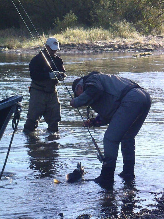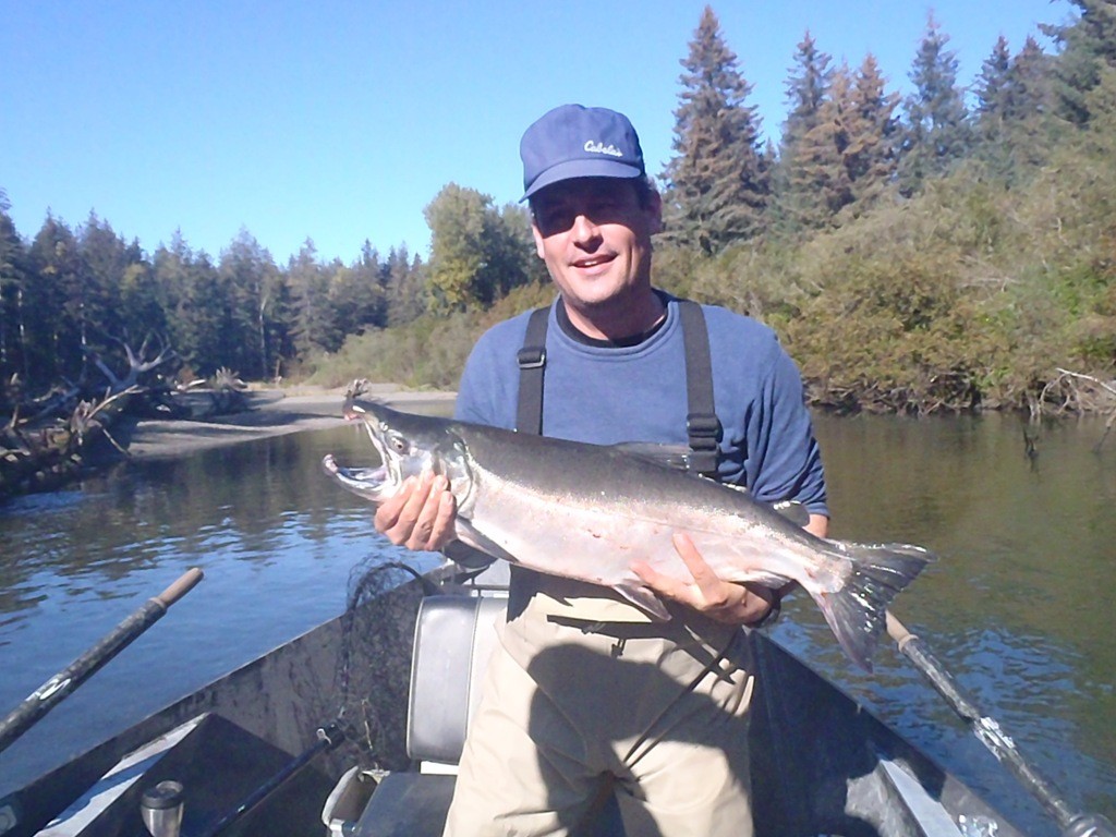 Well we have not seen any rain this month, and the water is very low on the Situk and all other rivers in the area. The fishing has been good in the early morning and late afternoon, but during the sunny afternoons, it has been a bit tough. I have had a lot of trips down the river, and have many good photo’s to share. As you all know, my internet connection this season has been tough to deal with, so the posts have been far and few between. I apologize for this, and will try to rectify for next season. I will be home in Oregon on the 3rd of October, and then the posts will pick up again. I almost cut off my finger 3 days ago, and ten stitches later, I am put back together, but it hurts pretty bad still, stitches come out in 7 days. Here are some great pics and good underwater film of the Silvers from the Situk.