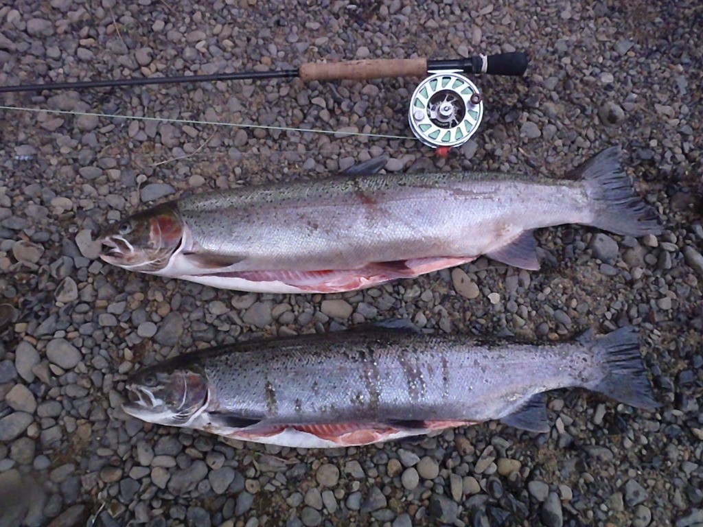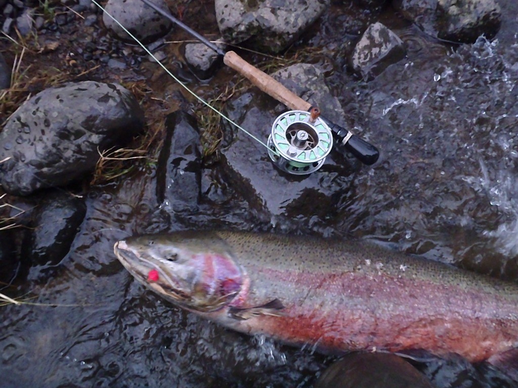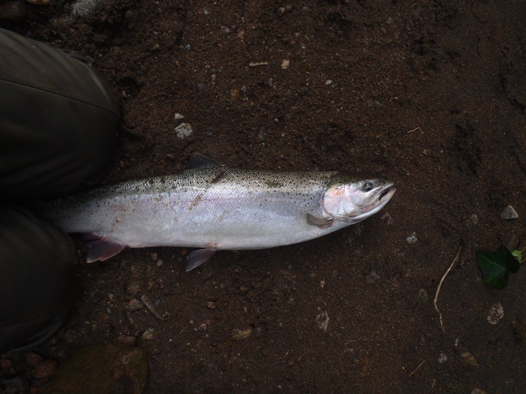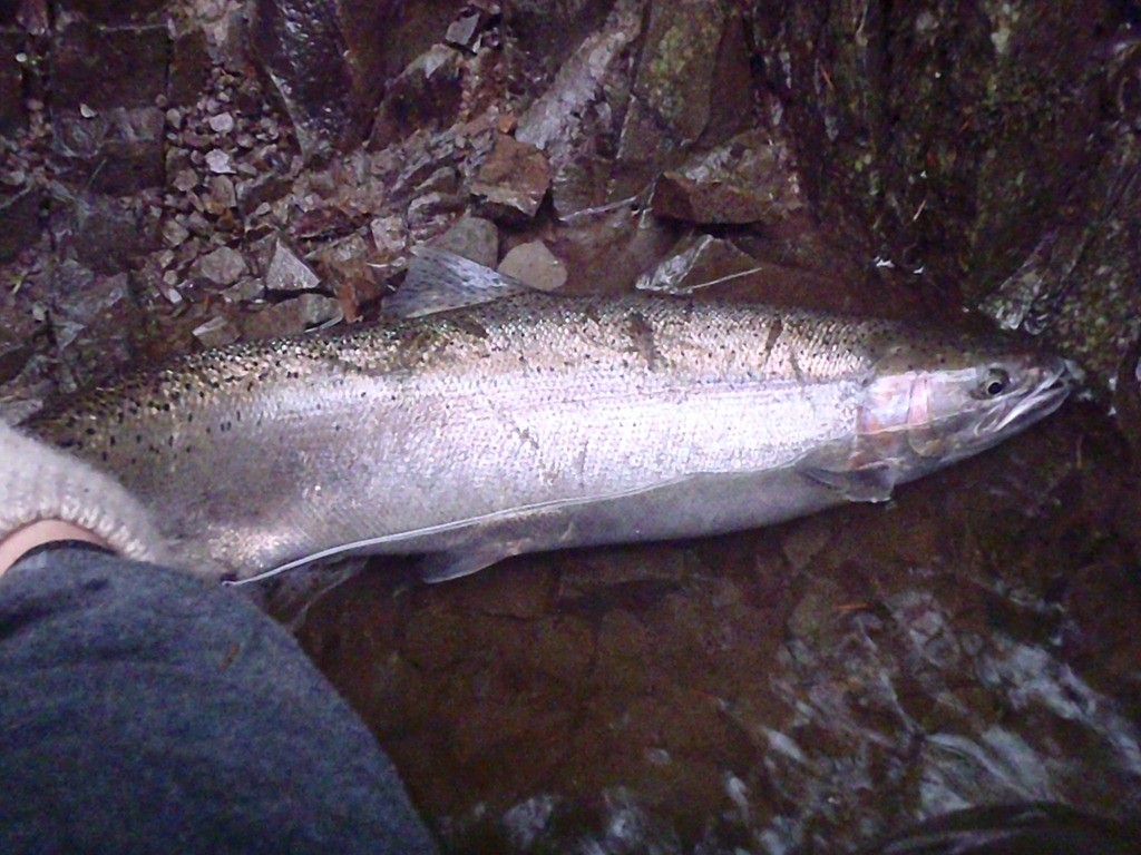 Now that the water is back shape, we can get down to business. The flood left the rivers I fish in a shambles. The rocks, trees, and even what seems to be the river itself has moved into a new position. This season is going to be a learning experience I can tell. All the rocks and structure I have gotten to know over the last 30 some years, have moved and some are gone completely. It slightly baffles the mind to think of the force it took to move some of those massive boulders and trees around. There are rocks that I have stood on for my whole life, that are now no where in site. Guess it’s about time to learn it all over again. I fished every day from the flood on, and no fish for me until the last couple of days. I have spent some time with my two friends out on the water, and between the 3 of us, we have managed to hook up with 28 fish, and land only 5. The water is still moving good, and the fish are feisty right now. Here are some pics from the last couple trip out from the three of us.
