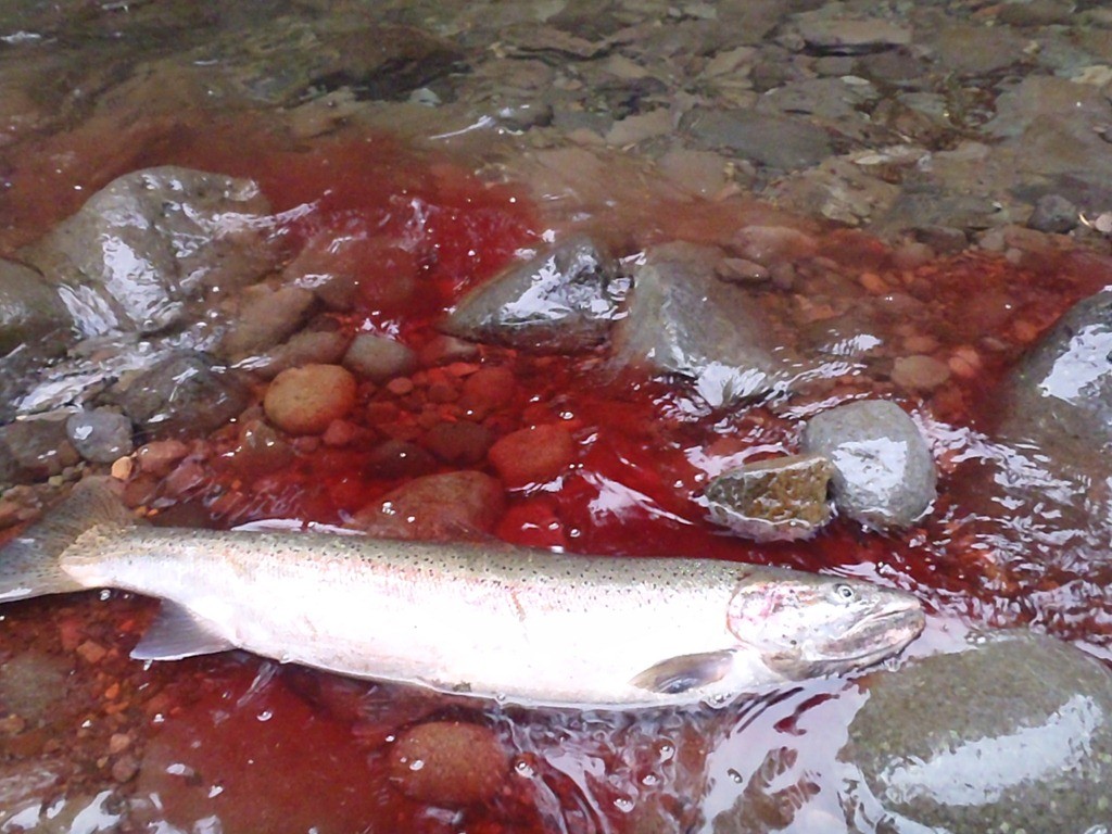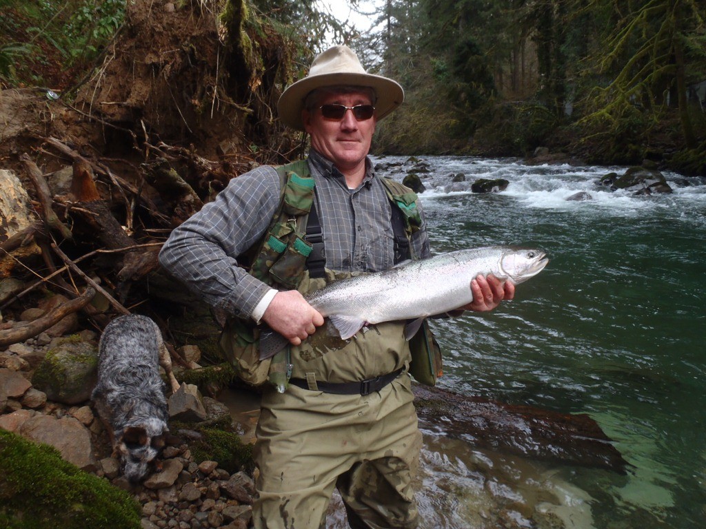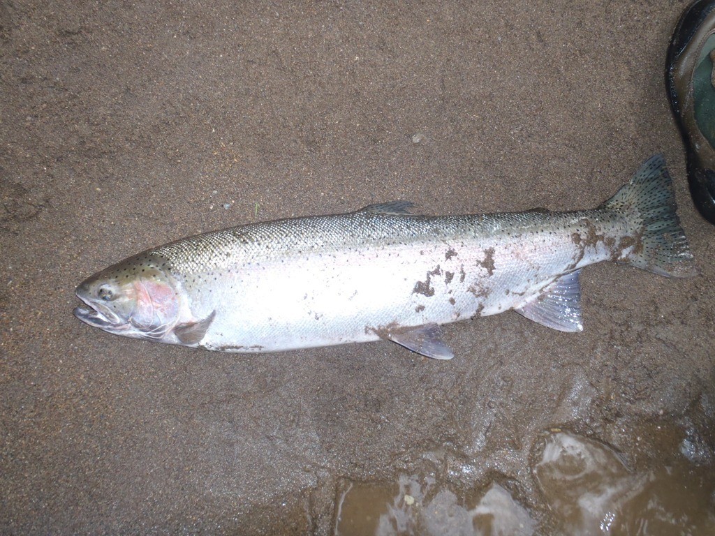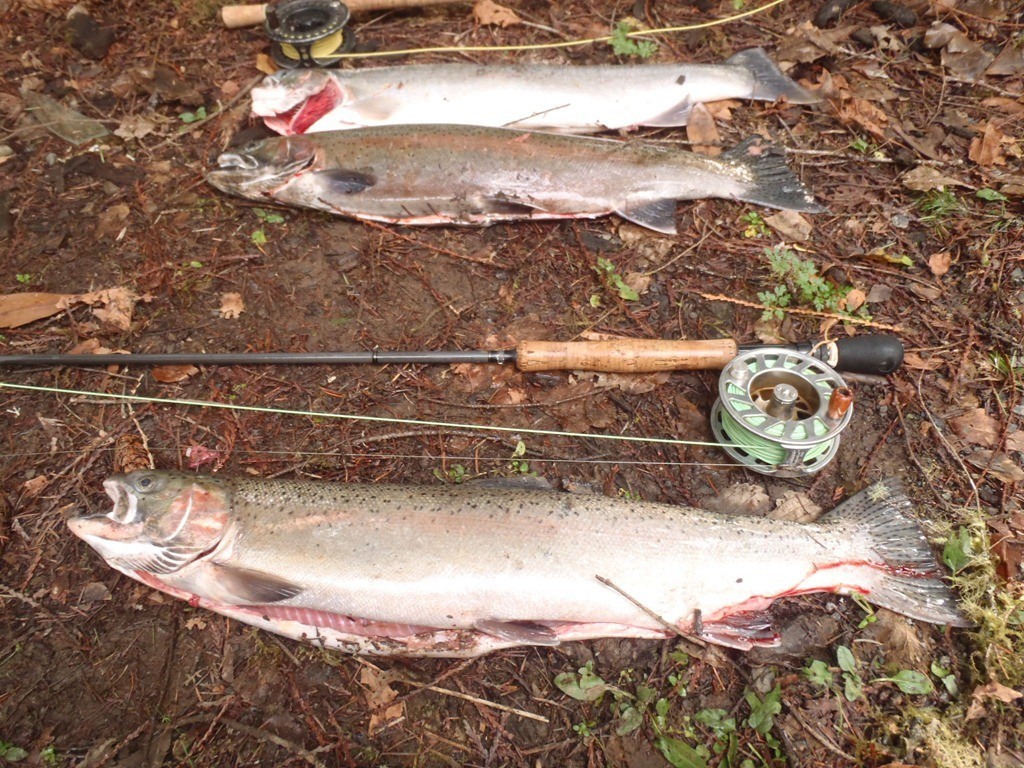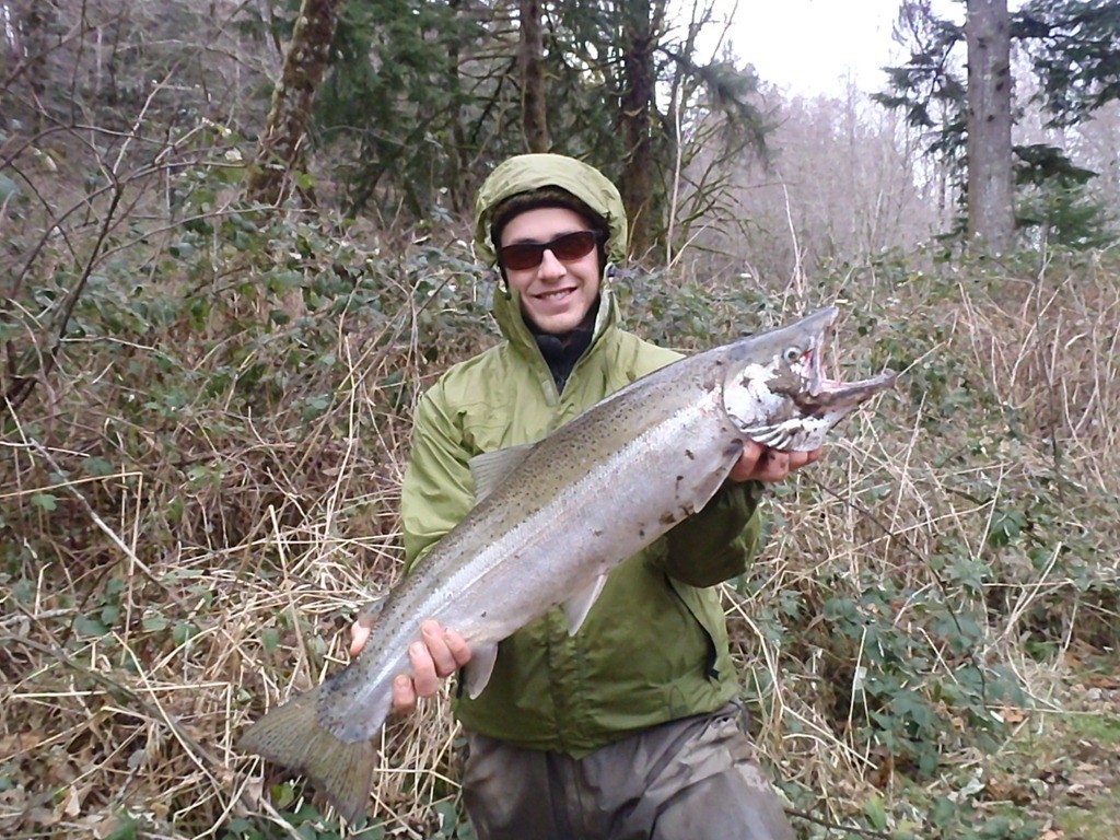As we are all aware of here in the area, there was some major flooding the last couple of days. Well I went out today to see my favorite creek, and to witness the destruction. I will try to explane it the best I can for those that know this area. The top slot had two trees that had recently fallen across the river, “They are gone and no where in siteâ€. We had a big cedar tree come down last year, and it is also gone down river. The cedar tree had caused the water to run around the outside of what we call the “Log holeâ€. Well that is not the case now, with the cedar tree now jammed in below the log hole and above the birthday hole, the water is now running on the inside again and the log hole should be back to somewhat normal flows. With the cedar tree now below the log hole, this will make it a challenge to land any big boys that run on down. Now the big log that was across the river at the top of the log hole, “The log that created the log hole†is gone down river a half mile and has dug in just above the table top hole. It is about three feet out of the water and is not in the way at all. Good place for this log to end up. So from what I saw today, without being able see the bottom at all. I would say that this may have cleaned up the creek for the best as of now. Hope it all turns out as good as it looks. I went to the hatchery and the doors are now open, so the fish are going to go on in and the count now begins. Let’s all cross our fingers and pray the fish don’t all run up and in in the next three days like they did 4 years ago.