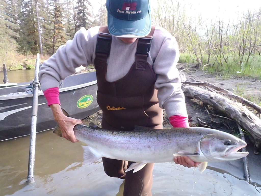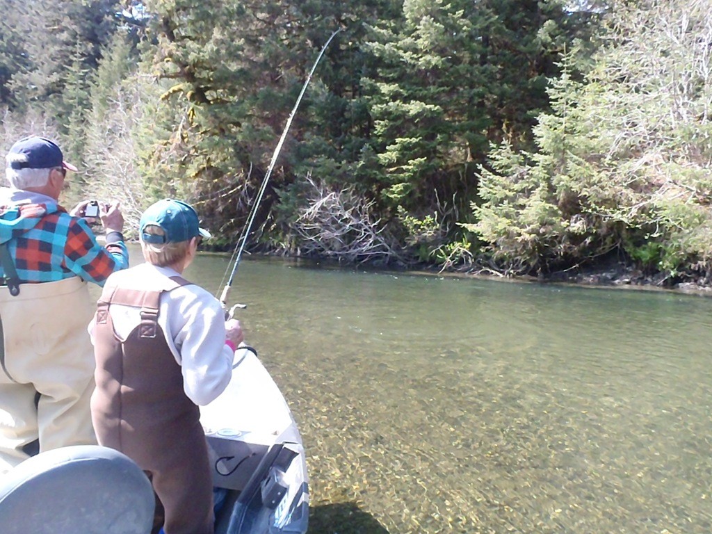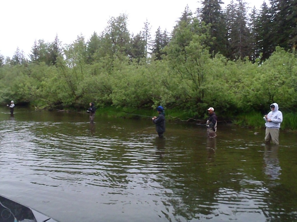 Been a bit slower this season compared to the last 10, but the people are coming in now, and the fish are also showing up in good numbers. I have had a few good trips so far this month, and all the Clients have been great. No good jump shots yet, but here are some great pics from these trips. I am heading home for a 10 day vacation to chase some kings around Oregon. I will be updating from there everyday. I went out last night and got fifty Sockeye in three hours. Not to bad! No pics though, just get em’ and let em’ out.