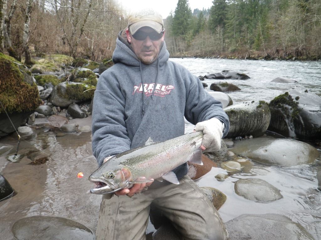 Well the Steelhead seem to be everywhere this season, and they just keep coming. The Oregon coastal streams are seeing record numbers of hatchery returns, and the Natives are in, and have been around since January, (A couple months early for most years). I have been fishing a lot of different water this season, due to Eagle Creek being a bust. I fished the Sandy, Wilson, Alsea, and another couple small unlisted streams through the week, and have had some good success. There have also been some large fish caught recently down along the coast line.