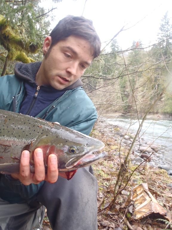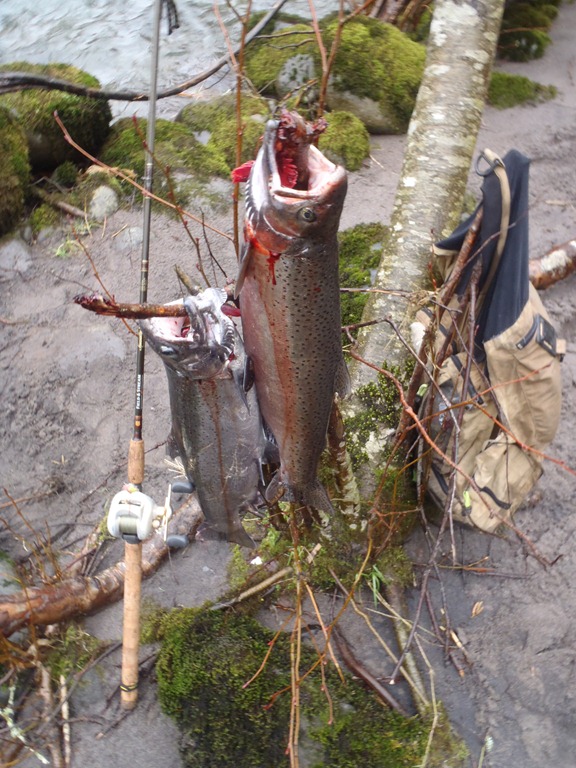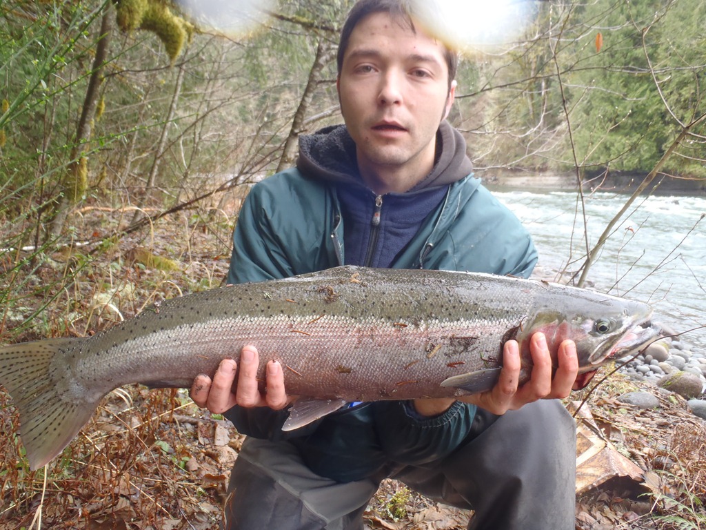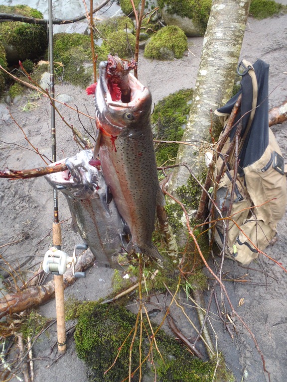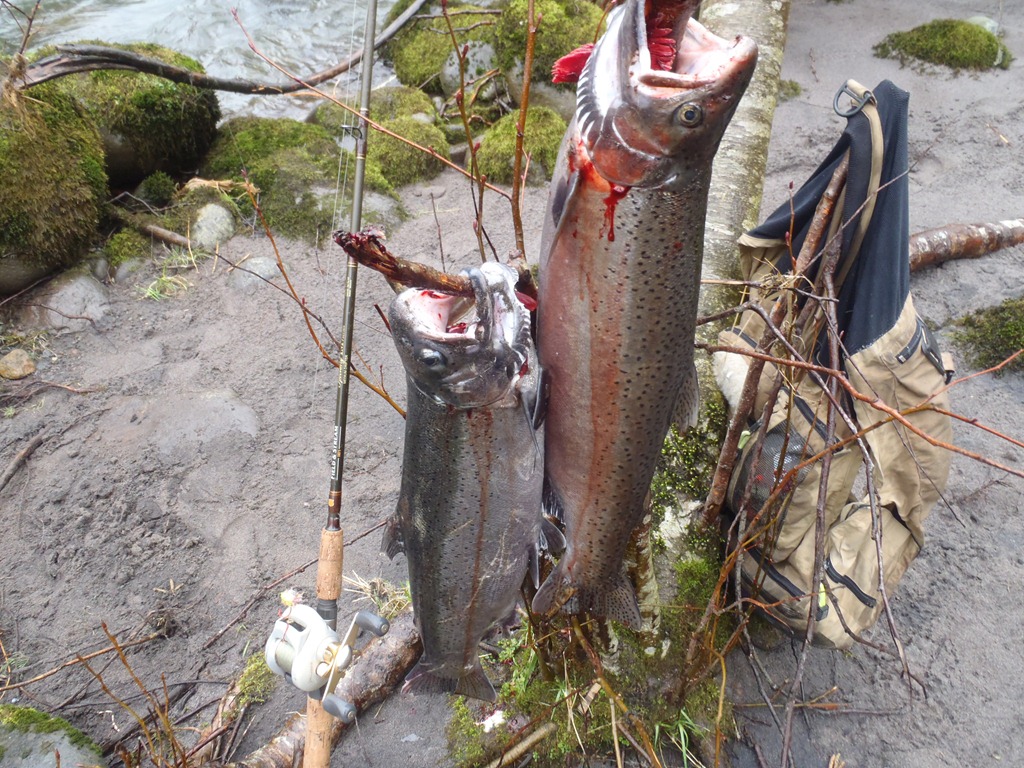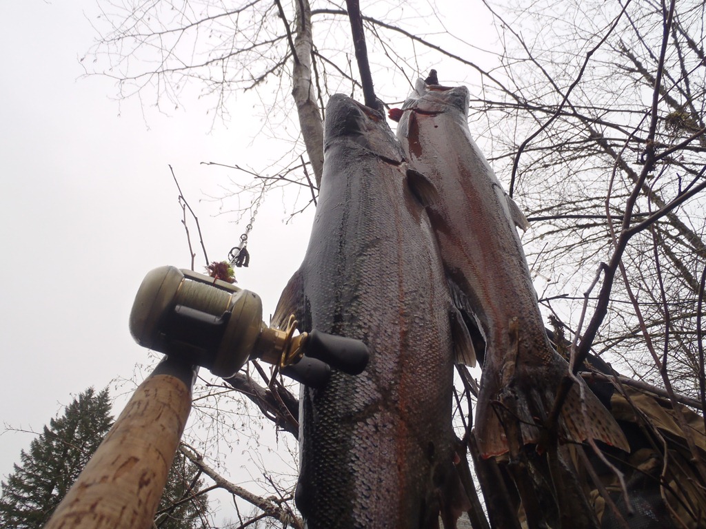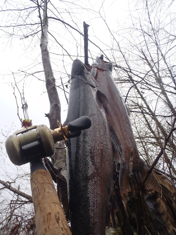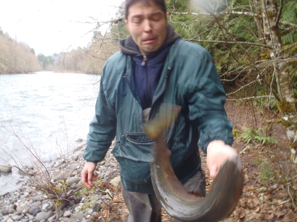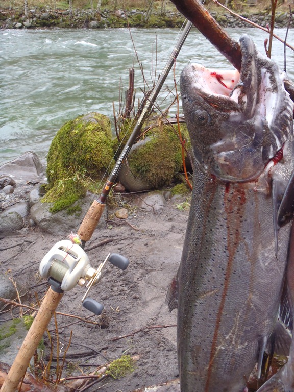 Well I usually don’t go plunking, but with all the rivers blown and muddy it was my only real choice. It took only about ten minutes to get my Springer to the bank, and then it died for Tommy and I for hours. During this time we did see several fish hooked and landed, and also many lost. The best was the Summer Steelhead I saw getting caught. That’s my next fish I hope before I head back to AK. Here are a few pics from today, and if the wife is feeling better in the morning we are hitting it up again.