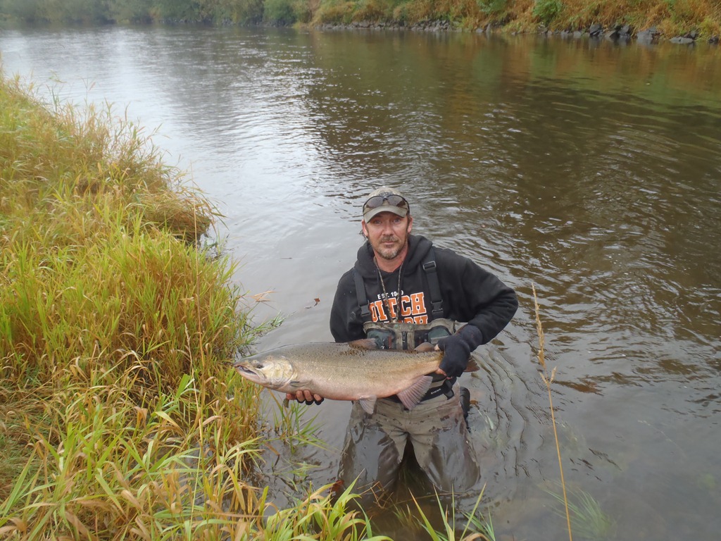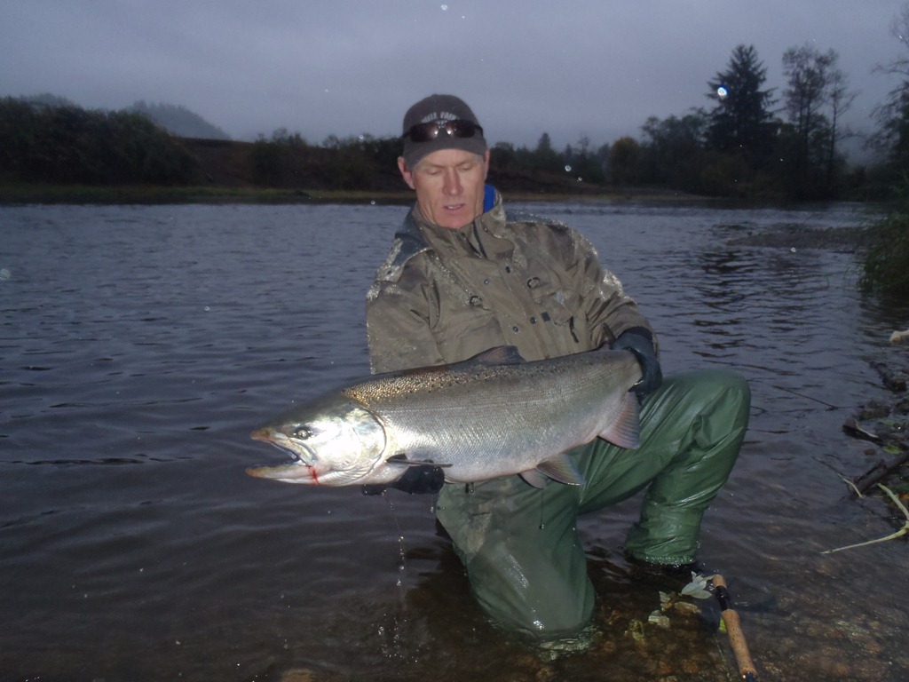 Hit up a nice little coastal river today with fair results. We went 4 for 7 on Chinook, and 1 for 1 on cutthroat. All in all not a bad day. The first King of the day came on the fly rod, and that was great to see. Here are some pics from today,the rest of the fish are on video only, and hopefully more after tomorrow.