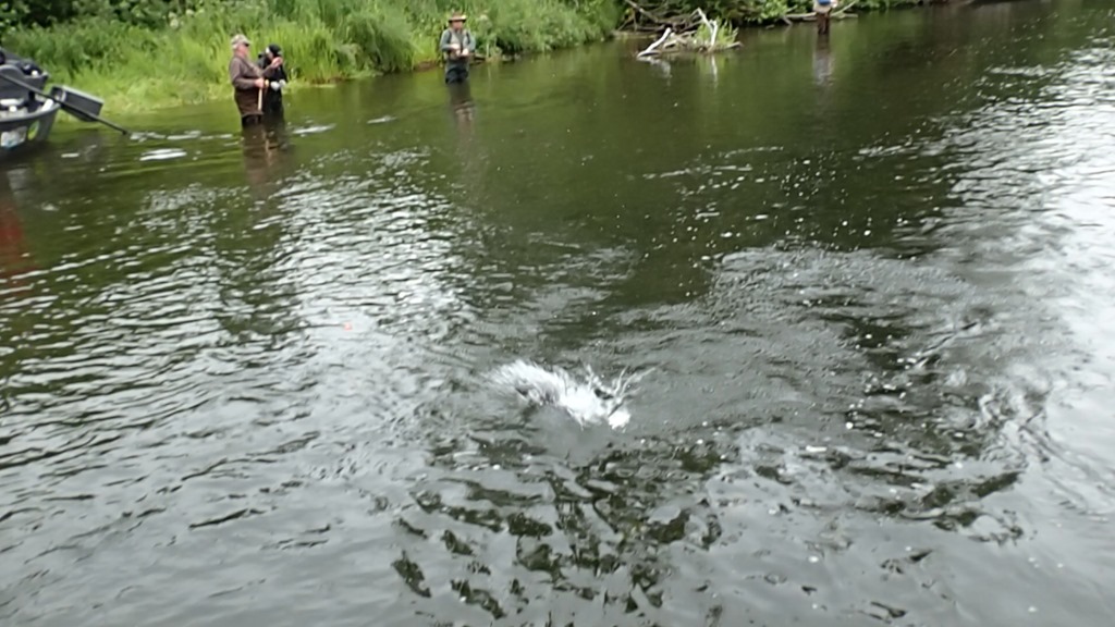 Reds are showing up now, with 1,000 fish over the weir last night, and also 5 big kings. Was a bit slow for Steelhead due to low water conditions and unusually warm spring weather, but unlike Steelhead the Sockeye don’t mind a little bit of low water to make their run upriver, and they are on the move now.