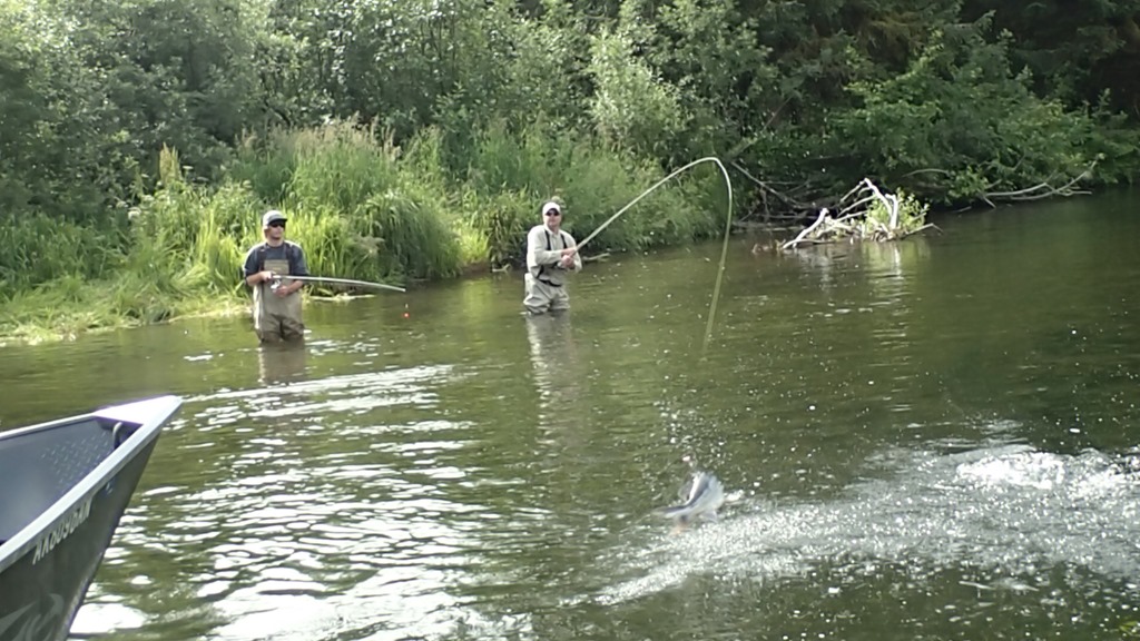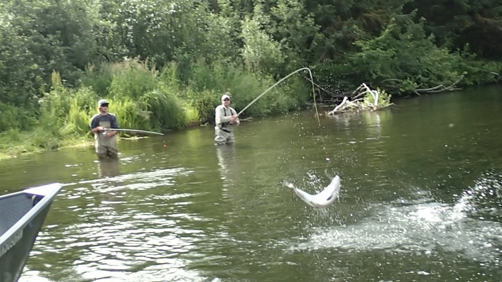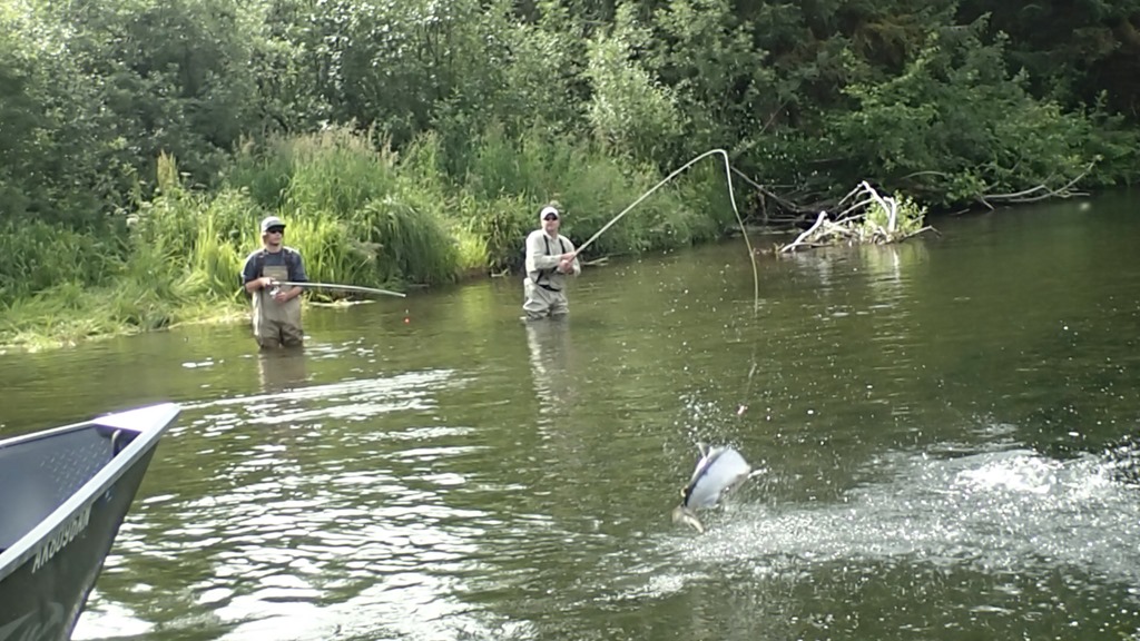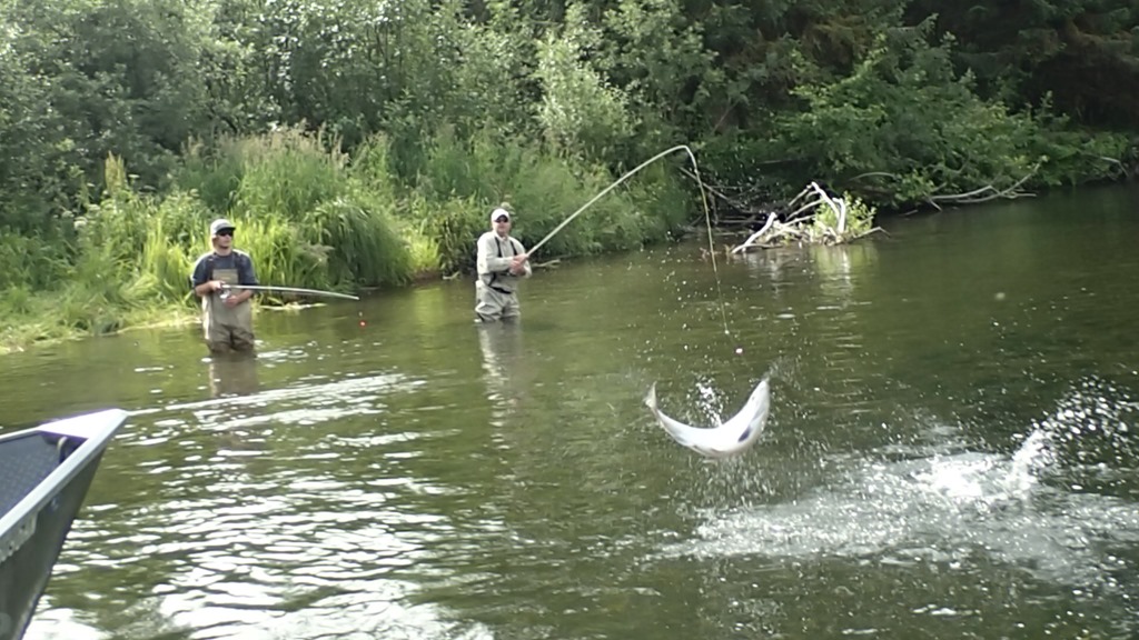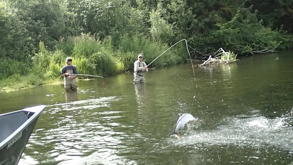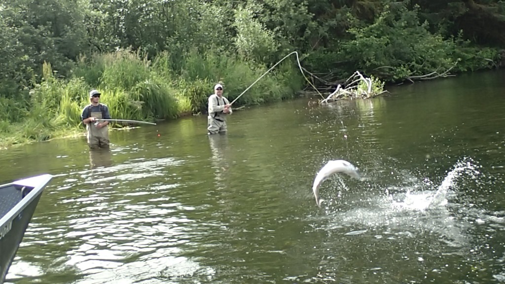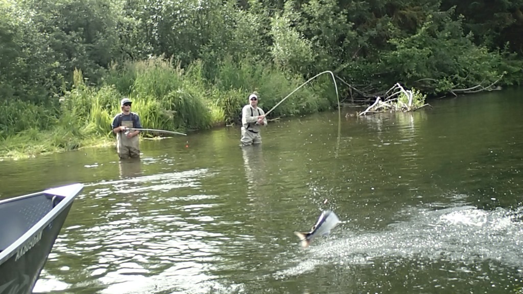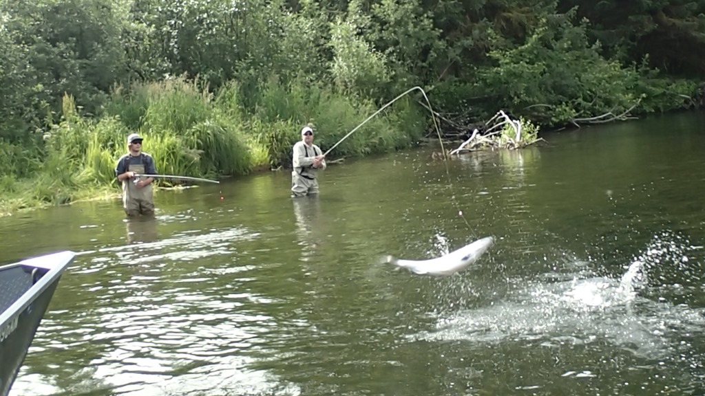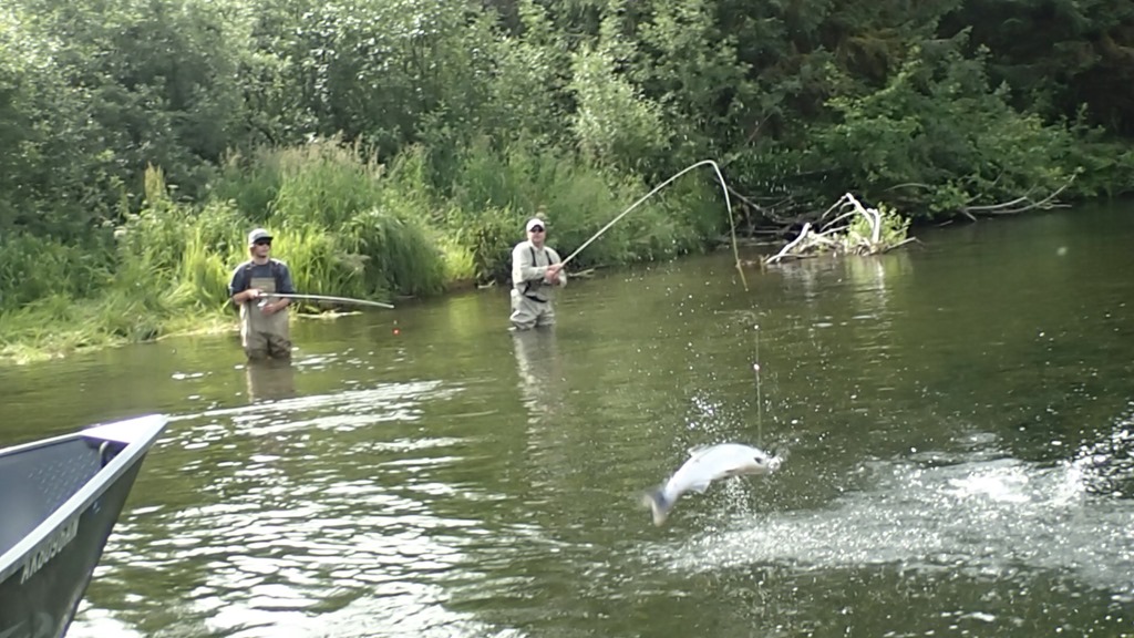 Sockeye are nut case fighters, with many runs and very aerial, but they are not traditionally a real bitey fish. Most are caught with a lining style of fishing, but some do bite. We have created a jigging technic that works very well, and you can watch them actually attack the jig and crush it. You will not hook as many fish this way, but you get to actually watch them attack and bite for real.