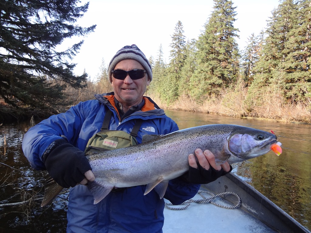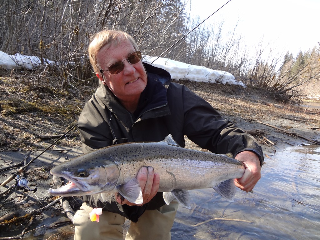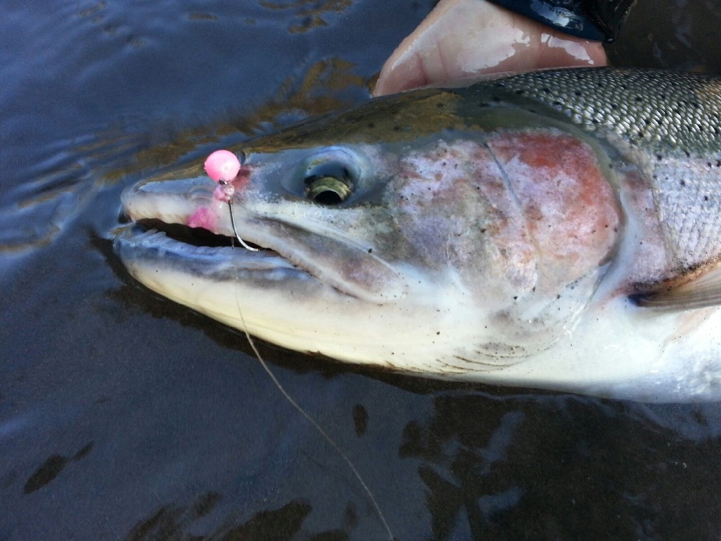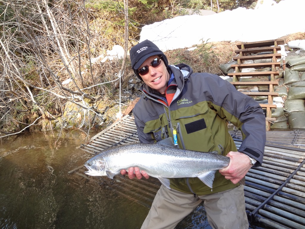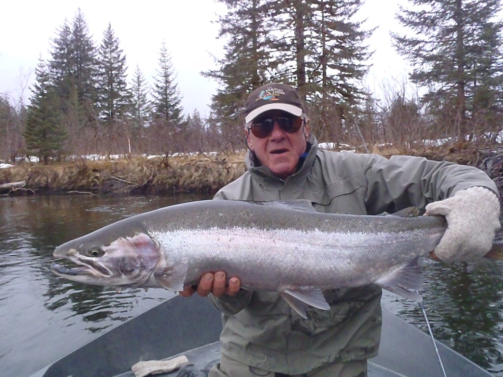 I don’t know why I have not been on this site this year. We had a very hard Steelhead season due to weather, and I have been down about it all Sockeye season. There were some good days with Steelies, but not when we really needed it to happen. Sockeye season is the best I have ever been a part of up here, and the Kings are everywhere, but still not open to retention in the upper river. There were incidental catches along the way, and some nice pics taken of them before they were released unharmed. Here are some pics from the last couple months. I have not taken many Sockeye shots this year due to the amount of fish we have been catching, it is hard to take the time out to snap a shot. 130,000 Sockeye, 900 Kings, and some 40,000 Pinks roughly have passed the weir as of today. That’s a pretty good number of fish in this little system. If the Kings hit 1,000 they may let us keep one a day and hopefully only one for the year on the river so there is no real impact. With more than 75% above the cut off line even if it was open, the spawn this year will be big. Here are some pics for you.