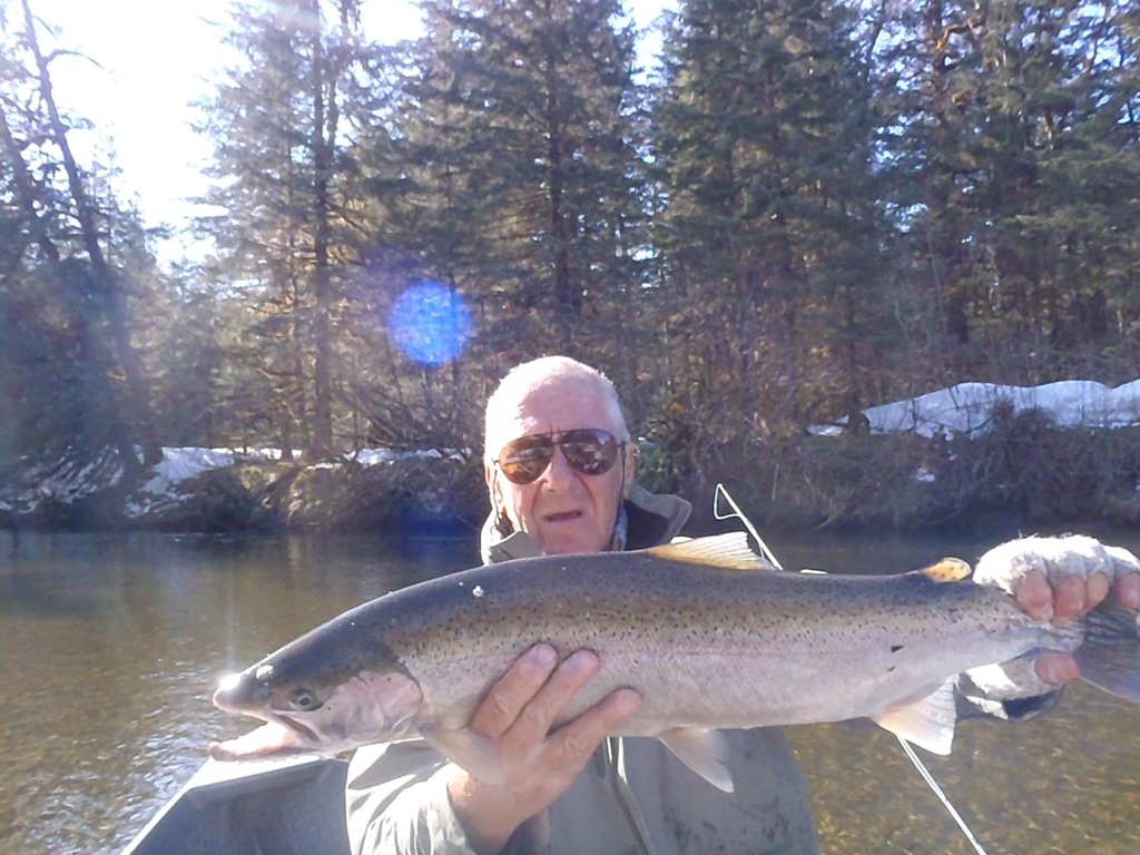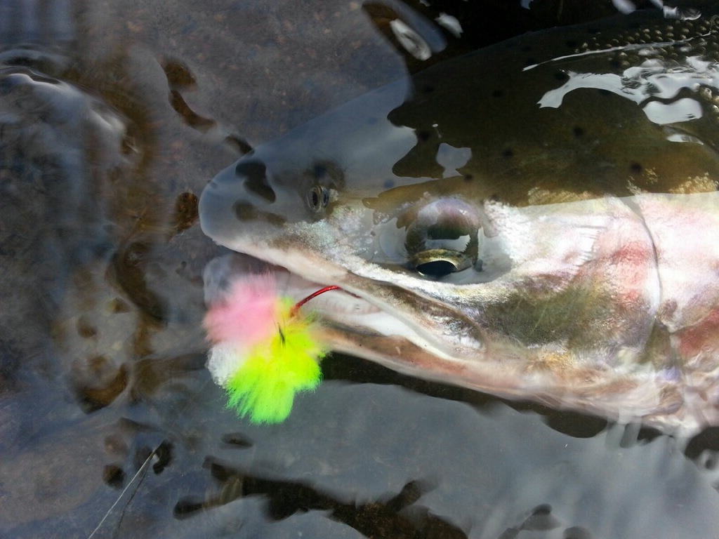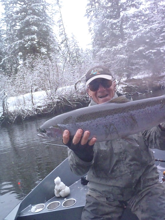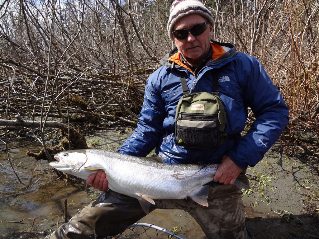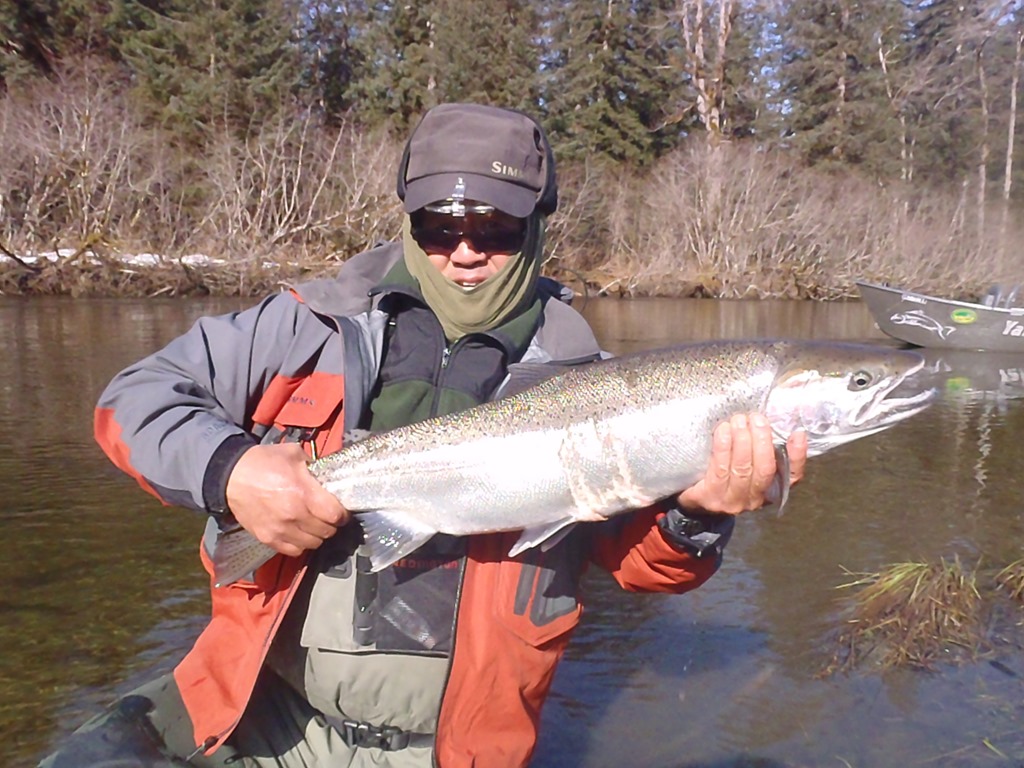 I don’t know why I have not been on this site this year. We had a very hard Steelhead season due to weather, and I have been down about it all Sockeye season. There were some good days with Steelies, but not when we really needed it to happen. Sockeye season is the best I have ever been a part of up here, and the Kings are everywhere, but still not open to retention in the upper river. There were incidental catches along the way, and some nice pics taken of them before they were released unharmed. Here are some pics from the last couple months. I have not taken many Sockeye shots this year due to the amount of fish we have been catching, it is hard to take the time out to snap a shot. 130,000 Sockeye, 900 Kings, and some 40,000 Pinks roughly have passed the weir as of today. That’s a pretty good number of fish in this little system. If the Kings hit 1,000 they may let us keep one a day and hopefully only one for the year on the river so there is no real impact. With more than 75% above the cut off line even if it was open, the spawn this year will be big. Here are some pics for you.